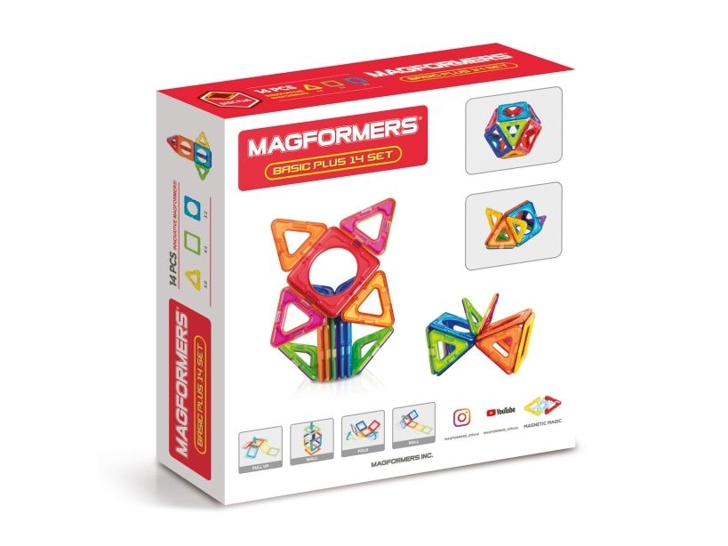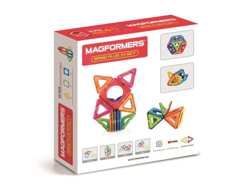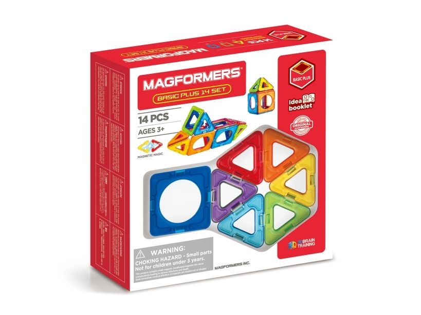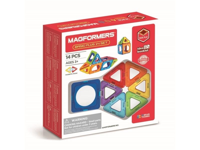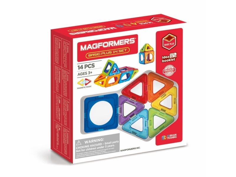 Magformers sind magnetische Konstruktionsspielzeuge. 14 Stück in verschiedenen Grundfarben.