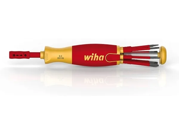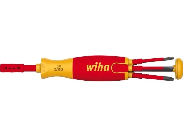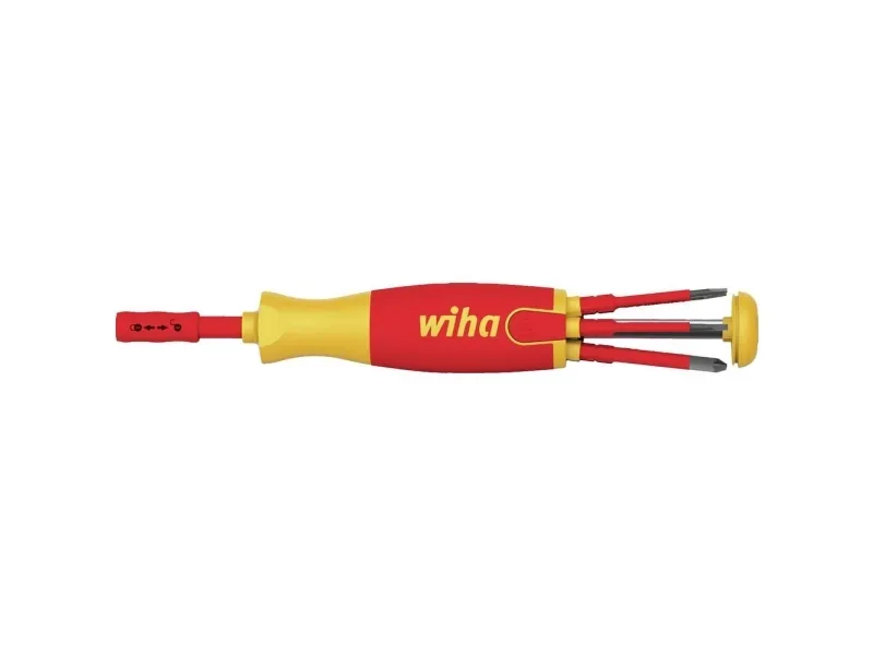 The screwdriver with the bit magazine LiftUp electric is the ideal companion for every electrician out on a job. The bit depot hidden in the handle provides space for 6 standard slimBits and extends out of the magazine at the press of a button, making it easy to take out the bits. The time-tested ClicFix holder grips all bits securely and reliably locks them into place. This technology transforms the bit magazine into an all-purpose screwdriver. The magazine bit holder also ensures maximum safety. Both the magazine bit holder and the slimBits that it contains are certified to the international IEC 60900 standard. The slender, 75 mm slimBits ensure perfect access to low-lying screws or spring clips thanks to protective insulation fully integrated into bits in the front section. The twistable cap brings a further advantage, ensuring convenient handling.