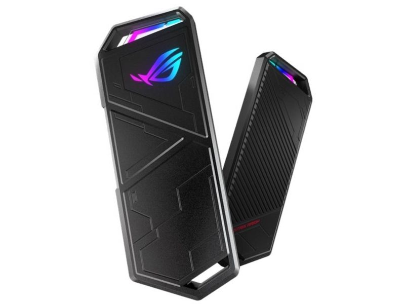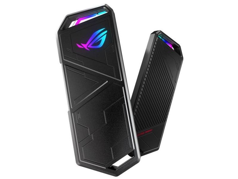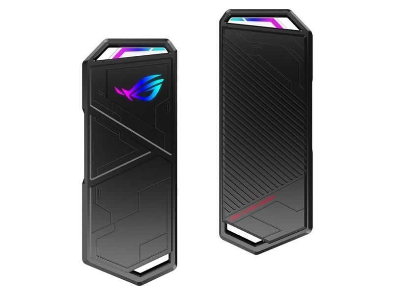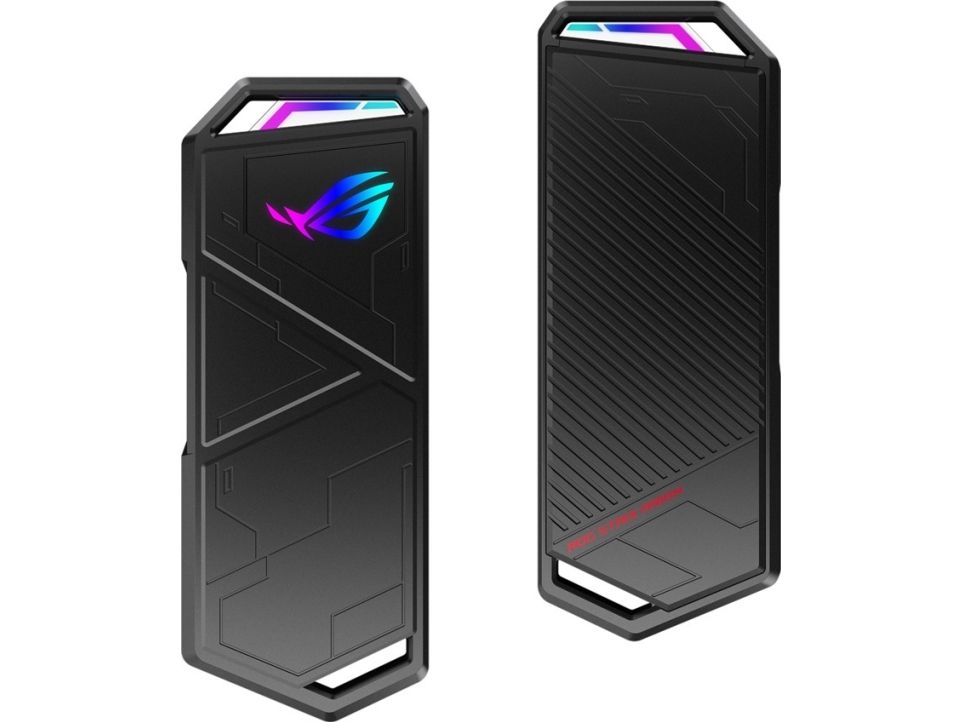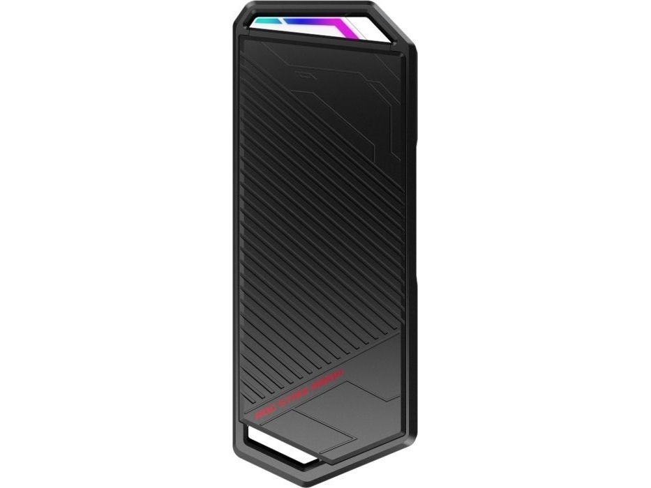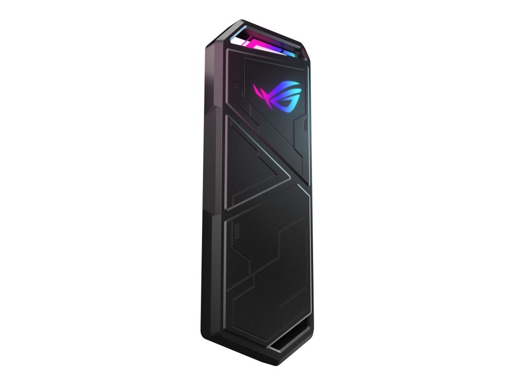 ROG Strix Arion is an SSD enclosure that fits an M.2 PCIe NVM Express SSD with a 2230/2242/2260/2280 form factor and features USB-C 3.2 Gen 2 connectivity to deliver data transfer speeds of up to 10 Gbps. Its sleek aluminum alloy case features thermal pads for excellent heat dissipation, exclusive ASUS Aura Sync lighting effects, and a protective holder with an R-hook that altogether make ROG Strix Arion a high-performance, mobile storage solution.
