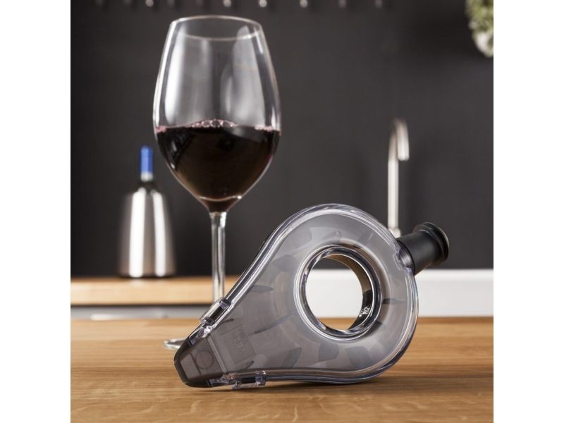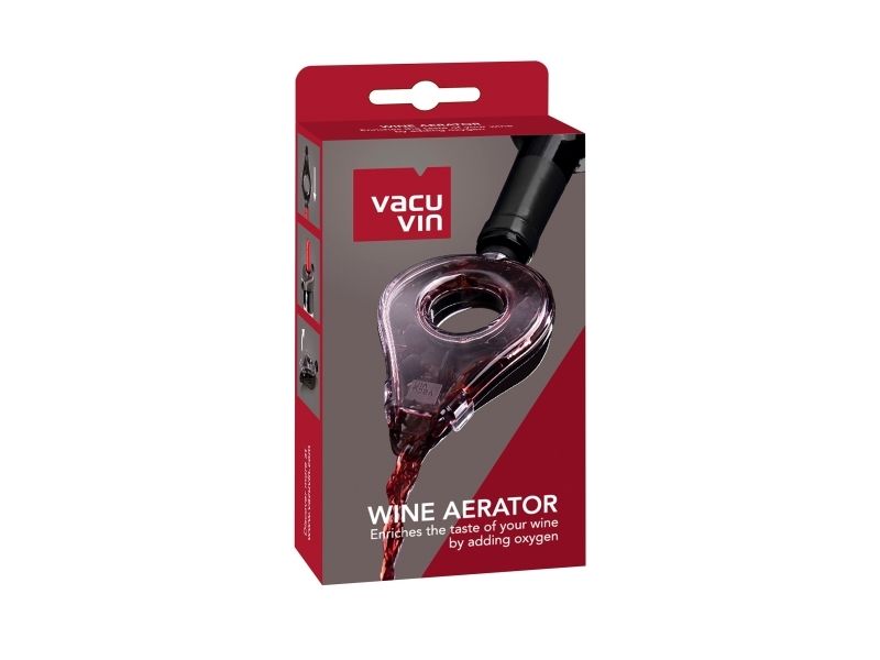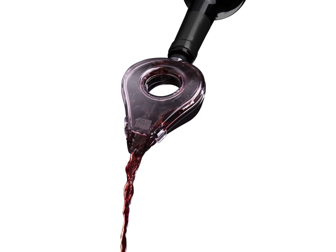 Der Vacu Vin Weinbelüfter setzt neue Maßstäbe im Weingenuss. Das Design des Produktes verlangsamt den Weinfluss in das Glas, versetzt den Wein mit mehr Sauerstoff und verfeinert somit das Aroma. Diesen Prozess kann man dank des transparenten und abnehmbaren Oberteils verfolgen. Man kann mit dem Weinbelüfter auch Ablagerungen auffangen, bevor diese ins Glas gegossen werden. Nach Gebrauch wird der Weinbelüfter unter fließend Wasser gereinigt und um den Flaschenhals zur Aufbewahtung gesteckt. Ein hervorragendes Zubehör für Weinliebhaber und schöne Ergänzung zu Ihren Wein-Accessoires.