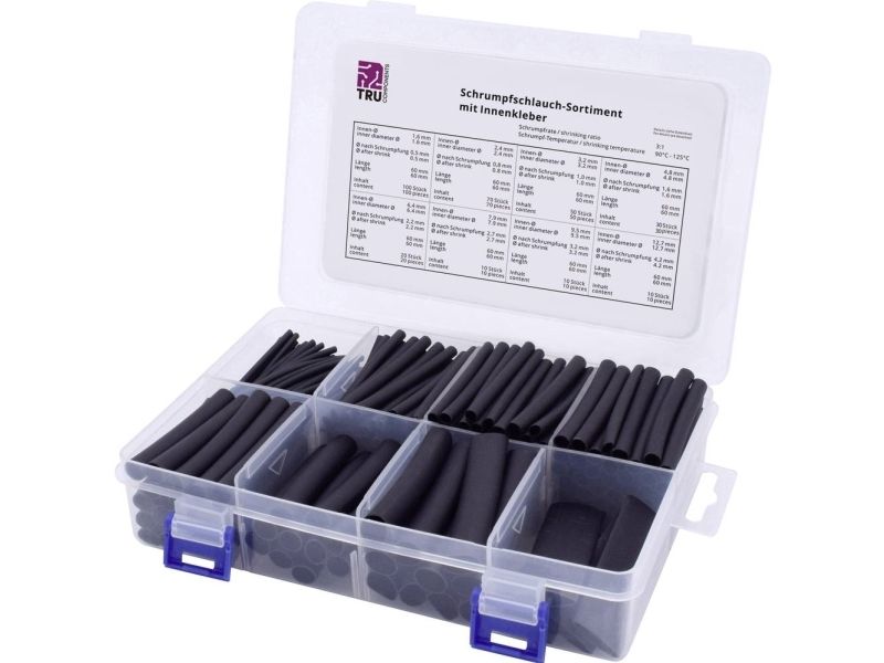 TRU COMPONENTS T1807CA006 Schrumpfschlauchsatz schwarz Schrumpfgeschwindigkeit 3:1 300 Teile