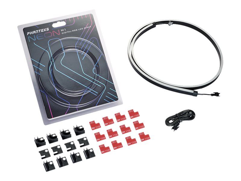 Phanteks' NEON Digital-RGB LED strips provide the smoothest lighting effect with many mounting positions to highlight your system. NEON has the perfect length to light up the contour of an ATX motherboard, chassis or other hardware component. It's easy to use and secure mounting set lets you choose which hardware to highlight with a diffuse ray of light from the NEON LED strip.