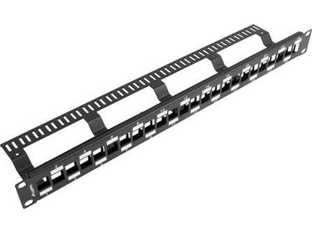 The Lanberg PPKS-1224-B patch panel offers a reliable and effective solution for cable management in network setups. With a 24-port capacity, this patch panel is designed for efficient organization of network cables, making it suitable for both personal and professional environments. The keystone type feature enhances connectivity options, while the included rear cable management shelf aids in maintaining a neat installation. Constructed with both plastic and metal materials, the PPKS-1224-B ensures durability and robustness for long-term use. Its staggered design optimizes space and facilitates better airflow between cables, reducing the risk of overheating in rack setups. Additionally, being rack-mountable, it fits seamlessly into a standard 19" rack system, making it a versatile choice for various network configurations.
