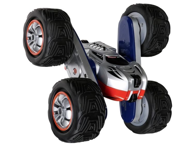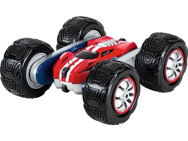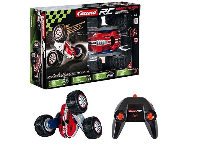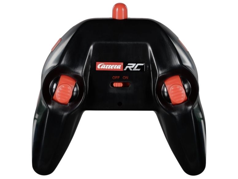 so erscheint der Carrera RC Turnator mit seiner außergewöhnlichen Konstruktion, die spektakuläre Stunts und absolut unvergleichlichen Fahrspaß ermöglicht! Dieses ferngesteuerte Auto begeistert von Anfang an! Seine riesigen, entgegengesetzt fahrbaren Räder und ein Full-Speed von bis zu 15 km/h ermöglichen spektakuläre Manöver. Mit der 360° Flip-Action Funktion legt er sich rasend schnell aufs Kreuz - und steht gleichzeitig bereit für den nächsten Wahnsinn. Oder man lässt das RC Auto rasend schnell im Kreis drehen bis allen schwindelig wird. Das Differentialgetriebe und die Hochleistungs-Steuerung mit 2.4 GHz Technologie für den Parallelbetrieb von bis zu 16 Fahrzeugen garantieren Fahrspaß weit jenseits herkömmlicher Dimensionen! Der LiFePo4 Akku mit 6.4 V- 700 mAh sorgt für bis zu 20 Minuten Power bei nur rund 80 Minuten Ladezeit. Ready to Run bekommt man alles geliefert, was man für den Fahrspaß seines Lebens braucht. Wer hat Lust, im Mittelpunkt zu stehen? Der Carrera RC Turnator ist jedenfalls ready for Action!