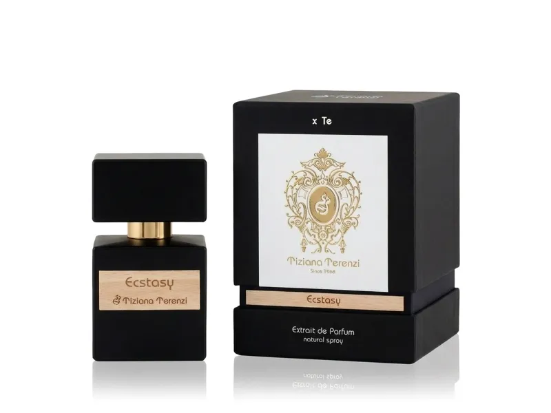 Tiziana Terenzi Ecstasy is a powerful addition to Tiziana Terenzii 12s line of fragrances exploring the mystique of fire and emotion This perfume for women is warm aromatic and spicy and opens with energetic flavors of pine and spruce A hint of pebbles adds dryness and a slight marine undercurrent