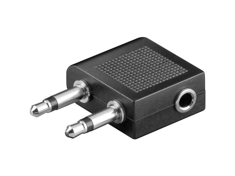 SpeaKa 3,5 mm Klinken-FlugadapterEingang : 2x 3,5 mm Klinkenstecker Ausgang: 1x 3,5 mm KlinkensteckerDieser kompakte Klinken-Flugadapter macht es möglich, Ihre eigenen Kopfhörer im Flugzeug zu benutzen. Der doppelte 3,5 mm Klinkenstecker wird einfach an den Standard-Doppel-Mono-Anschluss angeschlossen, den die meisten Flugzeugsitze eingebaut haben. Das bedeutet, dass Sie jetzt alle Kopfhörer mit einem 3,5 mm Klinkenstecker anschließen können. Unnötige Ausgaben für spezielle Kopfhörer gehören jetzt der Vergangenheit an.