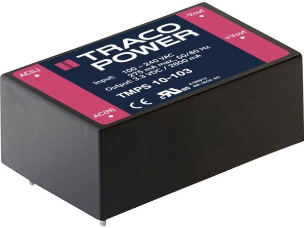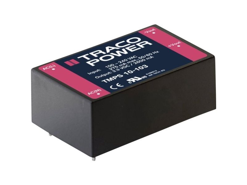 The TMPS 10 series comprises ultra compact AC/DC power supply modules in a lightweight fully encapsulated plastic casing for PCB mount. Beside the latest safety approvals for industrial and IT solutions (IEC/EN/UL 62368-1), they are also certified to IEC/EN 60335-1 for household appliance. These 10 Watt modules are the ideal solution for low power or segregated circuits when space is critical or for an efficient powering of a standby mode when compliance to ErP directive is required. A peak current of 130% facilitates the activation of main circuits.