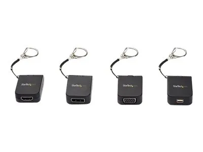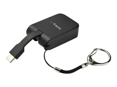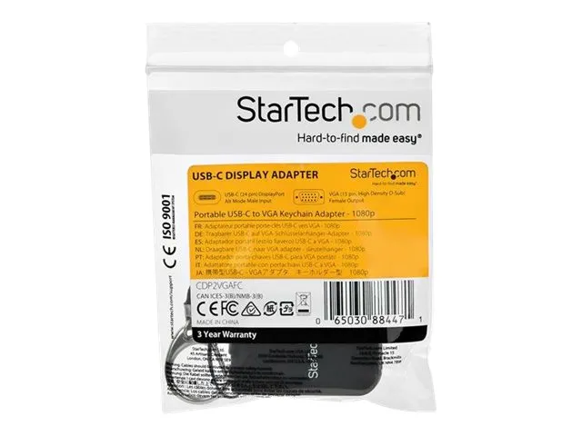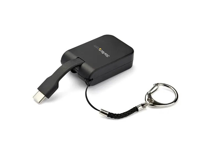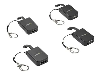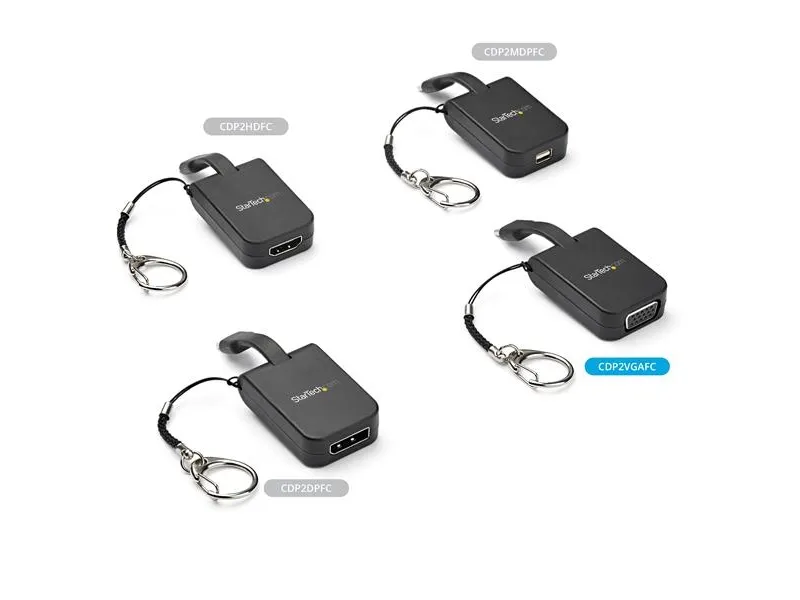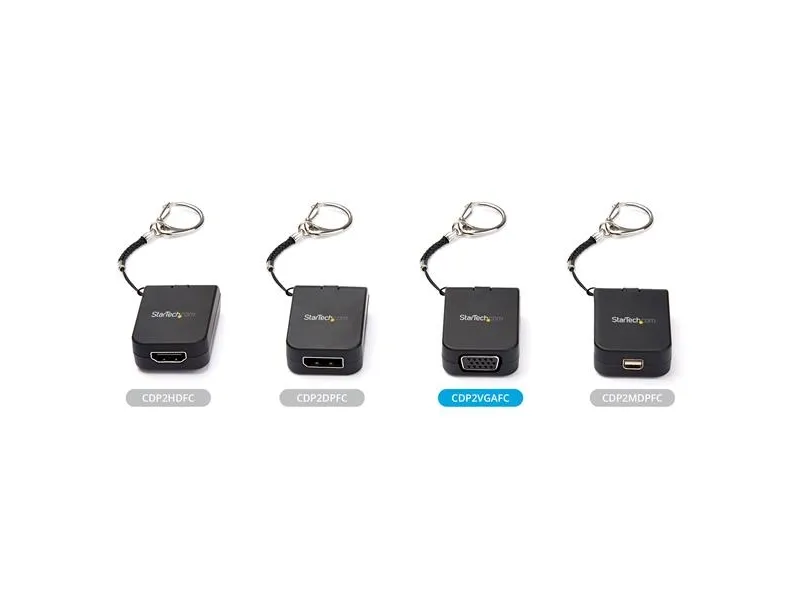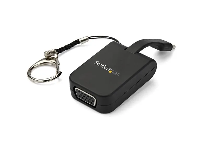 This compact USB-C to VGA adapter offers an ultra-portable solution for connecting your USB Type-C laptop or device to a high-definition VGA monitor, projector or other display. The converter is equipped with a removable, quick-connect keychain ring that easily attaches to your laptop or projector bag, maximizing portability.