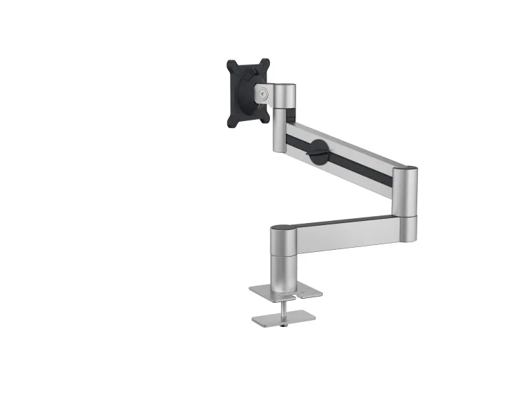 Einfache Anwendung: - Tischhalterung mit flexiblem Monitorarm für 1 Bildschirm - Individuell einstellbare Höhe, Neigung und Ausrichtung des Monitors - Gleichmäßige und angenehme Bewegung des Bildschirms durch innenliegende, wartungsfreie Gasfeder - Einfache Anpassung an das Monitorgewicht durch Drehknopf, kein separates Werkzeug notwendig - Extra leichte Anbringung des Bildschirms durch Einrasten in Halterung - Sicherheitssystem schützt Finger vor Einklemmen zwischen beweglichen Komponenten - Inkl. 3 individuell anbringbarer Kabelklemmen für geordnete Kabelführung