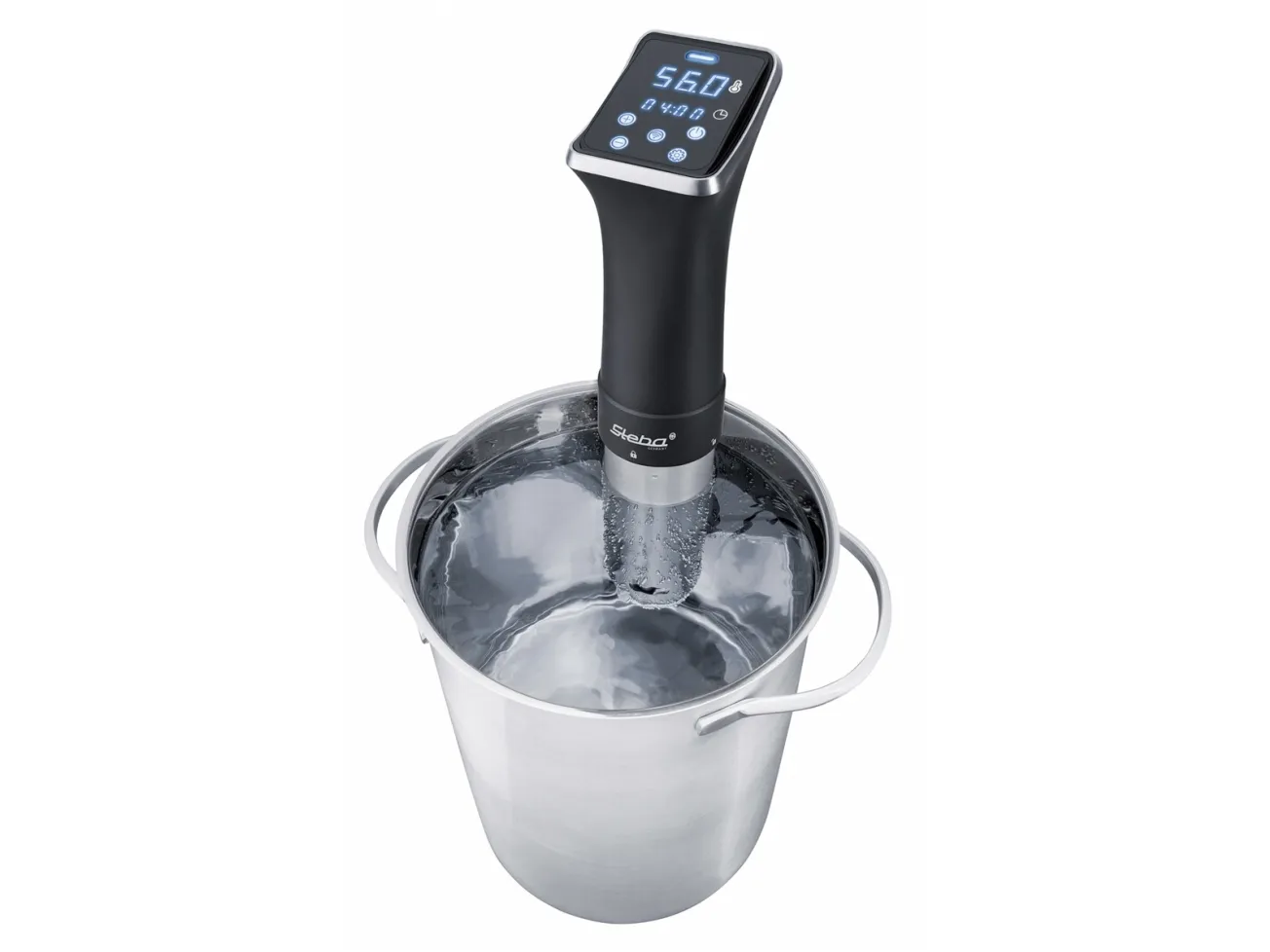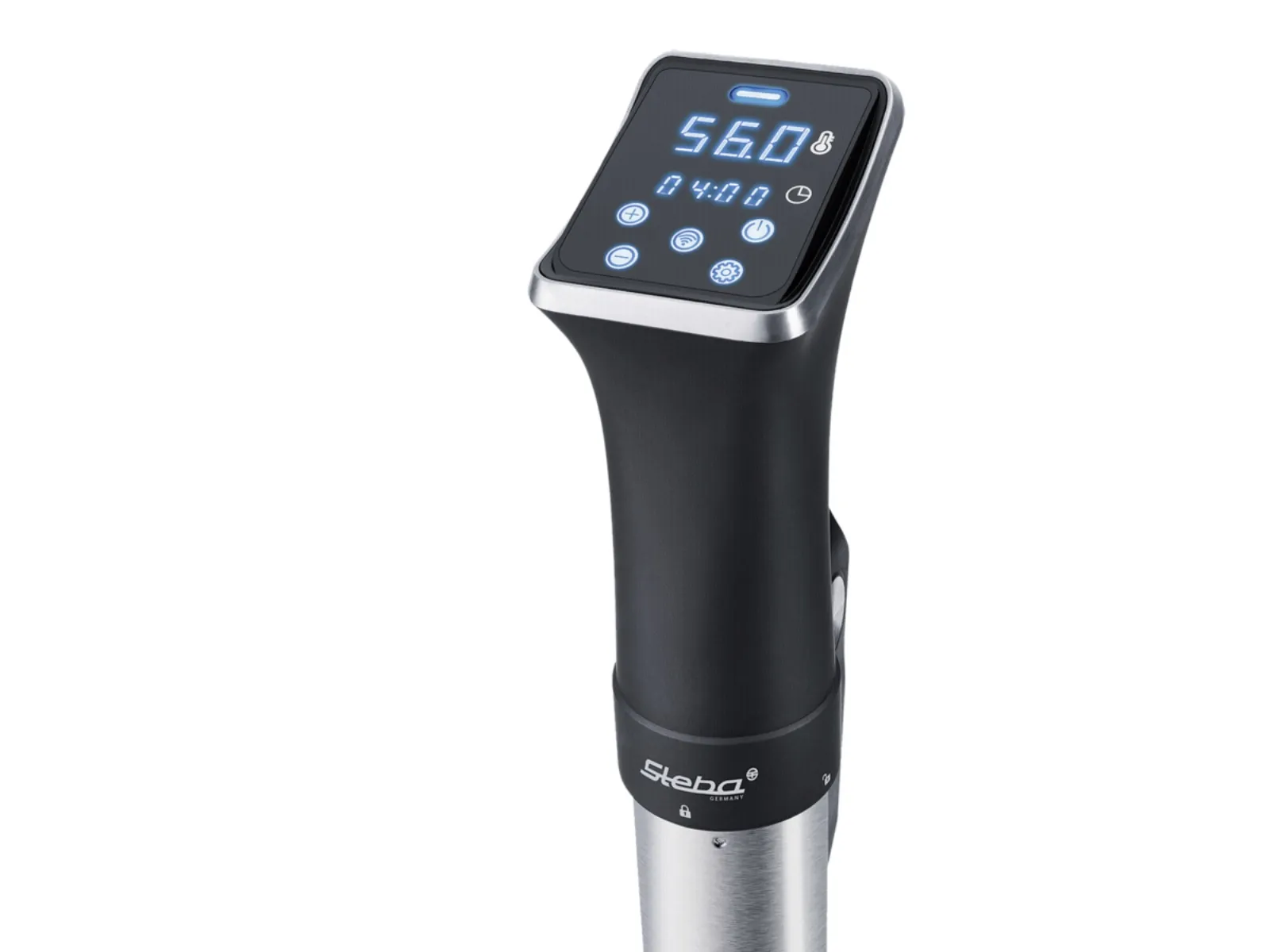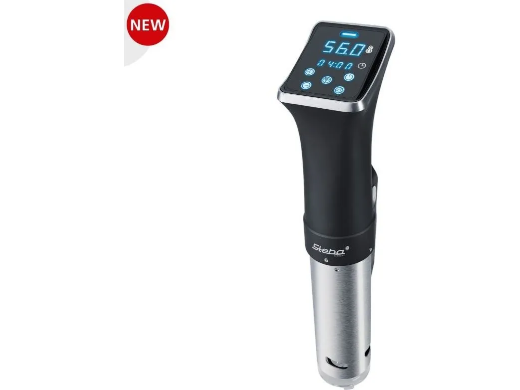 With the Sous-Vide cooker SV 80 from Steba, the dishes are a success in no time at all. It is mobile, space-saving and handy. The SV 80 is hung in any container that is at least 15 cm deep and heats the water it contains to up to 90°C. SousVide is a method of cooking food in vacuum sealed bags at low temperatures for a long time. Vacuum packaging, slow cooking and all round heat transfer from the water to the food reduces bacterial growth. The salts, the taste and the juiciness are preserved! The Sous-Vide cooker SV 80 heats 20 liters in approx. 45 minutes to 56°C with a maximum deviation of 0.1°C. In addition, the SV 80 has a WIFI function, so the cooking rod can be easily and conveniently controlled via mobile phone or tablet. The LC display provides information about the set time and the current temperature.