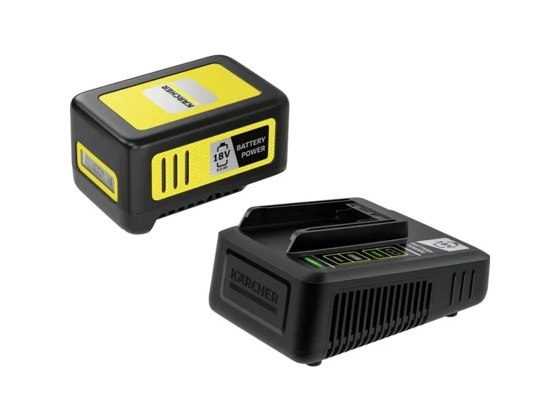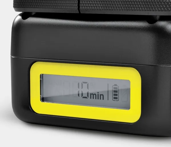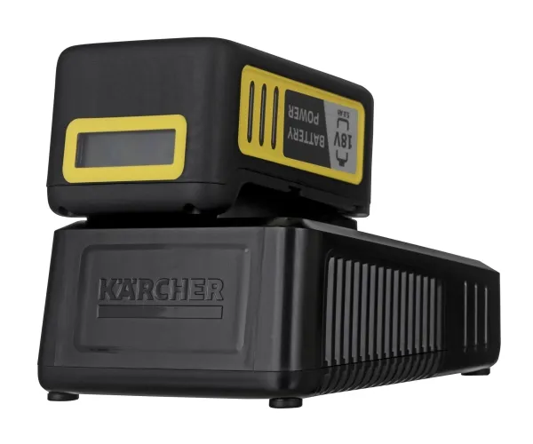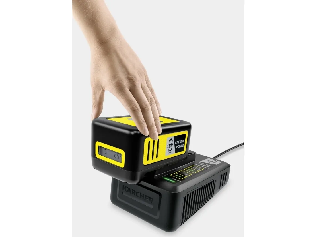 The 18 V fast charger can charge the 18 V / 5.0 Ah Kärcher Battery Power exchangeable battery with innovative Real Time Technology up to 80% in just 94 minutes. The Kärcher Battery Power 18/50 Starter Kit can be used for all devices in the Kärcher 18 V battery platform.Kärcher 2.445-063.0. Suitable for: Universal, Power source type: AC, Compatible battery technologies: Lithium-Ion (Li-Ion). Product colour: Black, Yellow. Input voltage: 100 - 240 V, Input frequency: 50/60 Hz, Input current: 2.5 A. Battery technology: Lithium-Ion (Li-Ion), Battery capacity: 5000 mAh, Battery voltage: 18 V. Cable length: 2 m, Width: 133 mm, Depth: 184 mm