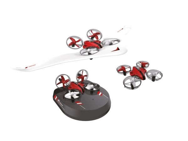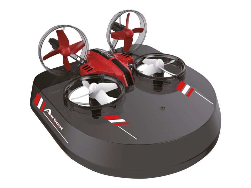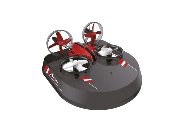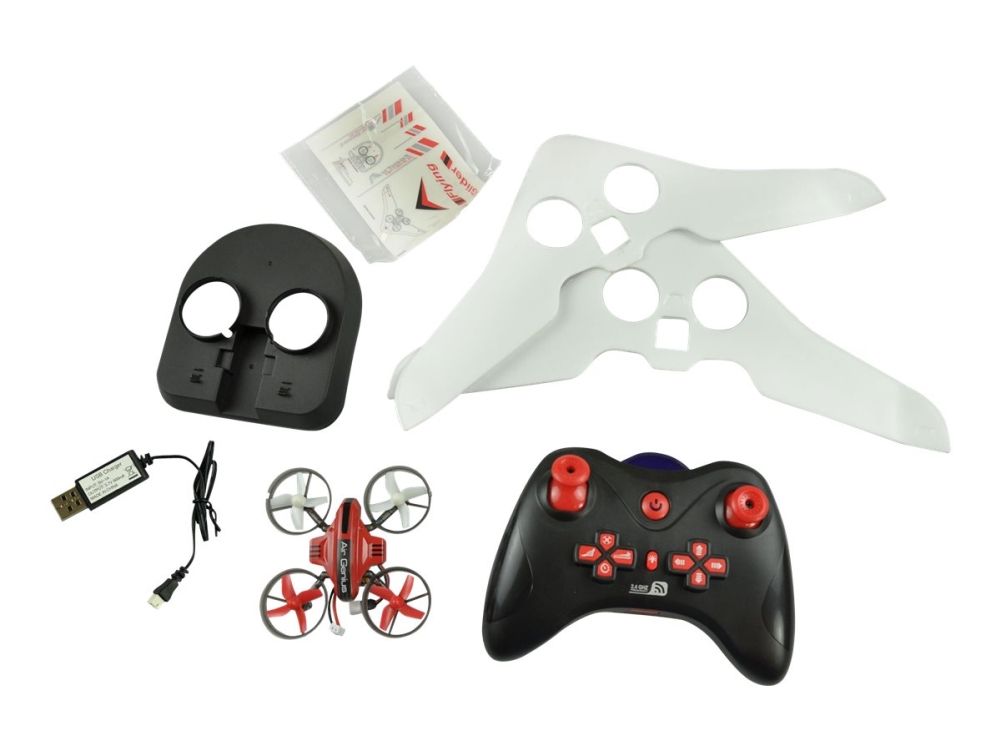 Egal ob Luft oder Boden. Die Air Genius ist für alle Elemente bereit. Der Tausendsassa oder Wunderwuzzi unter den Coptern. Als kompakte und wendige Drohne mit 6-Achs Stabilisation, 360deg Flip Modus, zuschaltbare LED Beleuchtung, drei Geschwindigkeitsstufen, storungsfreier 2.4GHz Funkfernsteuerung und Einsteigerfreundlichem Headless-Mode (Orientierungsmodus). In Verbindung mit der Ground-Base verwandelt sich der Air Genius in ein flottes Luftkissenfahrzeug, das rasant uber den Boden flitzt. Coole Drifts und Highspeedfahrten sind jetzt problemlos möglich. Richtig Spas macht dann auch die dritte Variante: mit den Delta-Flugeln verbunden schwebt die Drohne scheinbar muhelos durch die Lufte. Indoor- und Outdoor.
