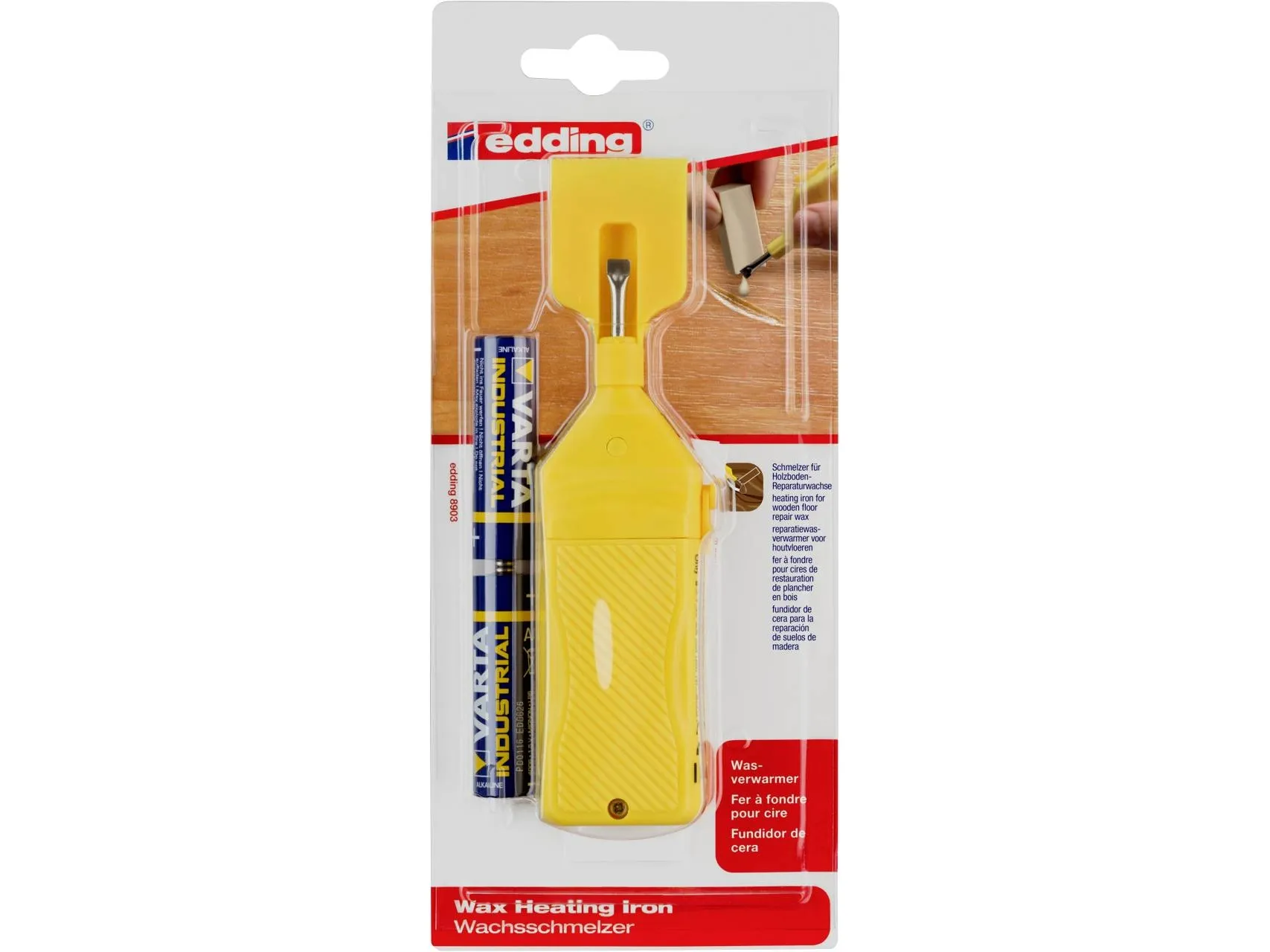 Edding Holzboden-Wachsschmelzer 8903 4-8903-1-4Holzboden-Reparaturwachsschmelzer 8903 und Heimpflege Der Wachsschmelzer schmilzt die erhältlichen Holzboden-Reparaturwachse (e-8902) zum Auffüllen von Schäden auf Holzböden wie Parkett, Laminat und Dielen Der batteriebetriebene Wachsschmelzer heizt auf Knopfdruck auf und wird inklusive Batterien geliefert