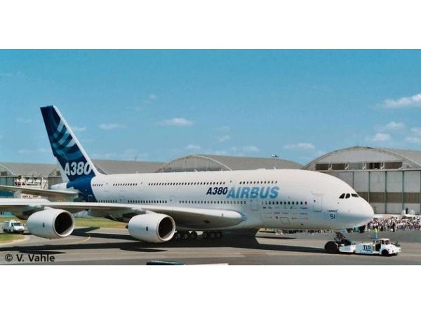 Am 18. Januar 2005 fand einer der wichtigsten Meilenschritte des Airbus A380-Programms statt. Das erste durchgehende Doppeldeck-Flugzeug der Welt wurde offiziell zum ersten Mal in einer Zeremonie in der Jean Luc Lagardere -Endmontagehalle in Toulouse, Frankreich der Welt gezeigt. Diese Veranstaltung besuchten mehr als 4.500 Gäste. Der Start des A380 markierte auch die Einführung des neuen Airbus-Farbdesigns, das erstmals seit dem A310 geändert wurde. Der A380 ist das erste Flugzeug das dieses neue Airbus-Design trägt. Es reflektiert nicht nur den gegenwärtigen Marktauftritt von Airbus, sondern auch seinen zukünftigen Status als führender Flugzeughersteller. Der A380 landete am 27. April 2005 um 14:23Uhr Ortszeit (12:23Uhr UTC) in Blagnac (Internationaler Flughafen Toulouse, Frankreich) nach erfolgreichem Abschluss des ersten Fluges der 3 Stunden und 54 Minuten dauerte. Mit der Indienststellung des A380 sind 2006 erste Passagierflüge vorgesehen. Das Airbus-Flaggschiff für das 21. Jahrhundert erhob sich zu seinem Erstflug mit einem Gewicht von 421 Tonnen in den Himmel - dem bisher höchsten Startgewicht eines Verkehrsflugzeugs überhaupt. Während dieses Jungfernfluges wurden alle Haupttestpunkte erfüllt, gleichzeitig markierte er den Anfang einer längeren Testflugphase, die fünf A380 einschließt. Der Umfang und die Härte dieser Boden- und Flugtestprogramme werden den A380 zu einer übergangslosen Indienststellung führen.