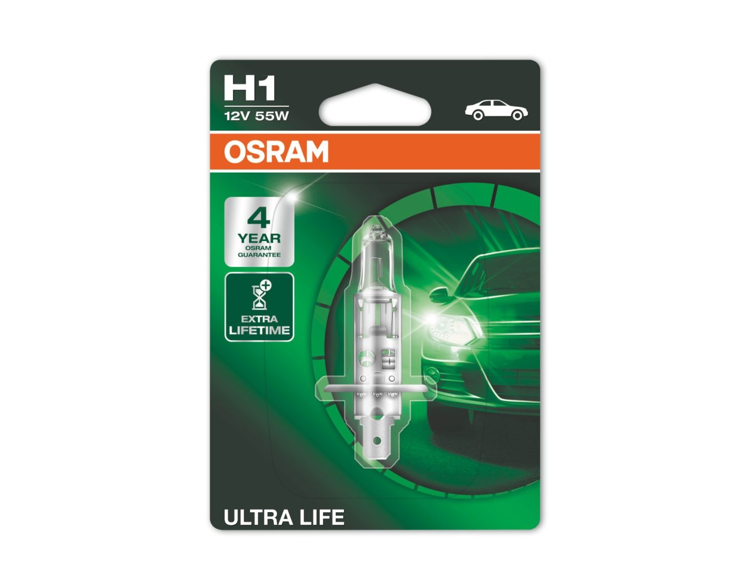 Product benefits - An ideal daytime running lamp due to long life span - Up to triple the lifetime (compared to standard halogen lamps) - 3 year guarantee (on halogen headlight lamps) Areas of application - Headlight - Ideal for use in clear-glass headlights Product features - Modern design with a silver cap (H4/H7)