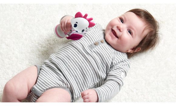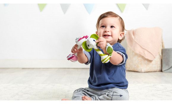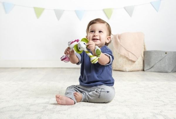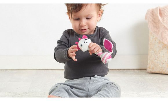 - SUPPORTS SENSORY DEVELOPMENT: The rattle's fun features - the rattling feedback, fun ball, clicking ratchet, crinkly tail and textured ears - all support your baby's sensory development. - ENCOURAGES FINE MOTOR SKILLS: The rattle itself and the spinning ball at its end help baby practice hand and finger muscles, encouraging fine motor skills. - FUN RATTLING FRIEND: The rattle features Florence, a friendly fawn with clearly defined features and a smiling expression. - Available in two other versions: Leonardo the Lion and Samuel the Elephant.