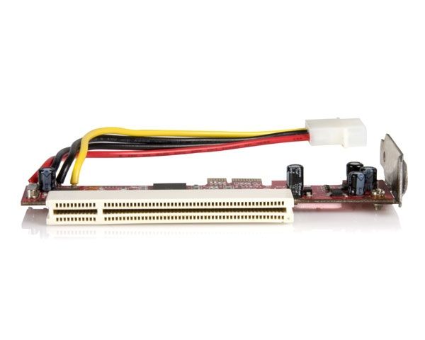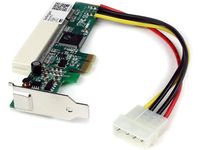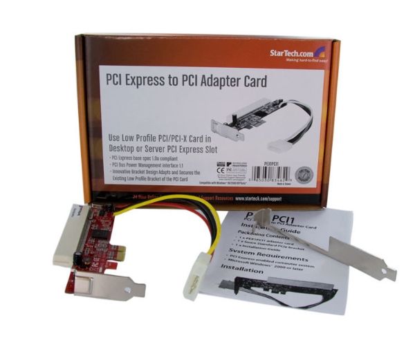 Mit der PCIe-auf-PCI-Adapterkarte können Sie Low Profile-PCI Erweiterungskarten in einem Server- oder Desktop-Hauptplatine PCI Express-Steckplatz verwenden. Die Adapterkarte entspricht den Spezifikationen für PCI Express 1.0a und PCI 2.2 und wird über einen 1x-PCIe-Steckplatz angeschlossen, um an dieser Stelle einen Low Profile-PCI-Steckplatz bereitzustellen. Ein zusätzliches Standard-Slotblech für die PCI Express-Karte wird ebenfalls für die Verwendung in größeren PCI Express-Steckplätzen von Desktop oder Server mitgeliefert.