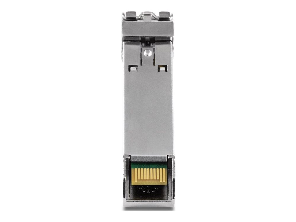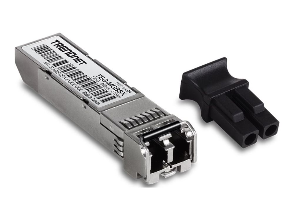 TRENDnet's SFP multi-mode LC module, model TEG-MGBSX, are compatible with standard SFP slots found on network switches and fiber media converters. The multi-mode SFP LC module is equipped with a duplex LC fiber connection interface, and supports Gigabit multi-mode fiber connections for long distance networking applications.