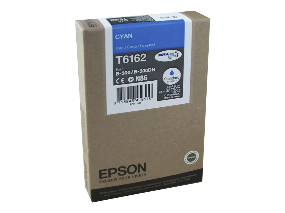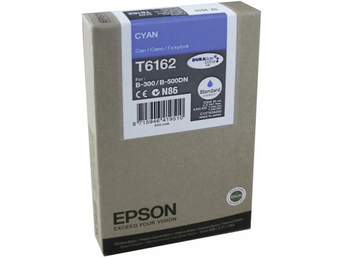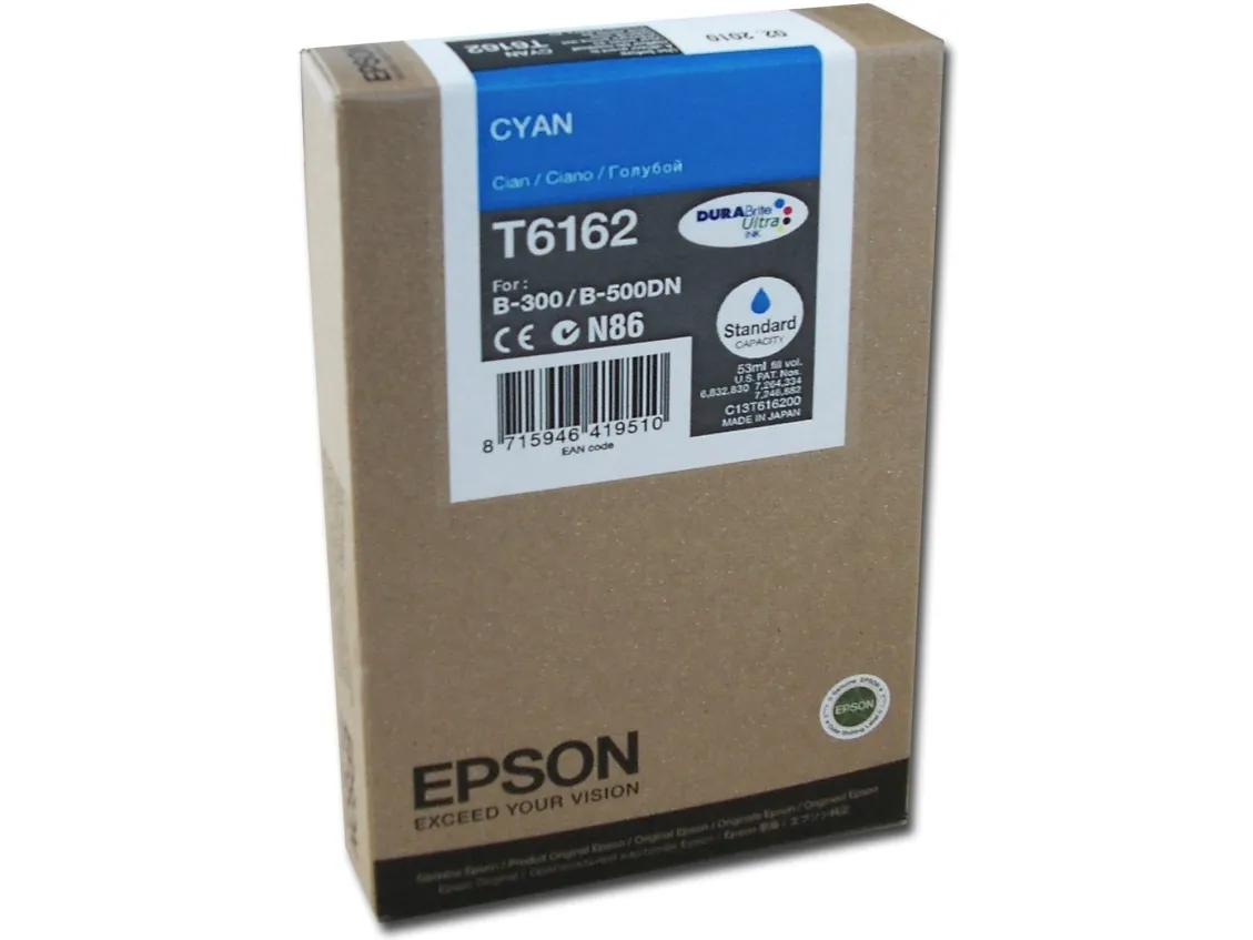 Tintenpatrone Epson DURABrite Cyan T6162 - wischfest und lichtbeständig, für perfekte Druckresultate, was immer Sie ausdrucken. Die Epson DURABrite Ultra-Technologie zeichnet sich dadurch aus, dass jeder Pigmentpartikel von einer Harzschicht ummantelt ist. Dadurch ist diese Tinte wasser- und wischfest sowie lichtbeständig. Sie eignet sich für alle Papiere und sorgt für hervorragende und haltbare Ausdrucke.