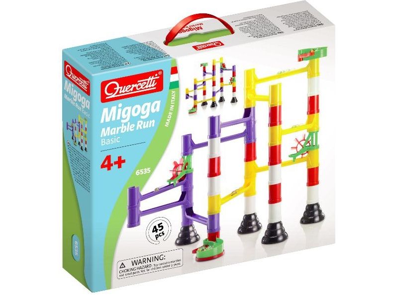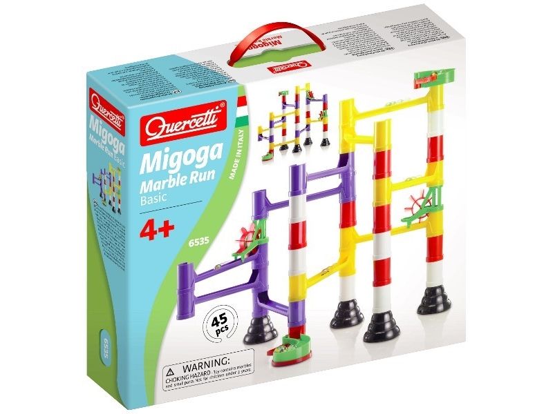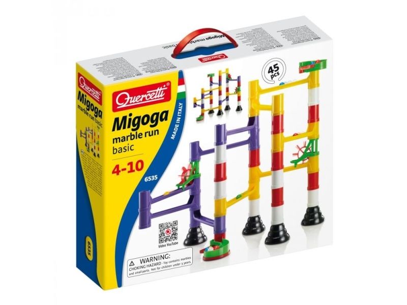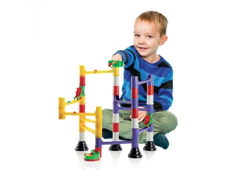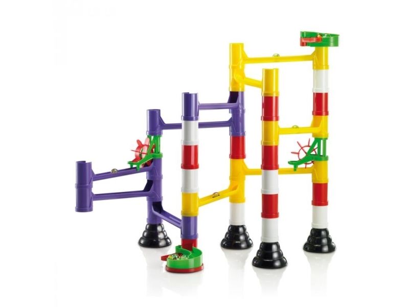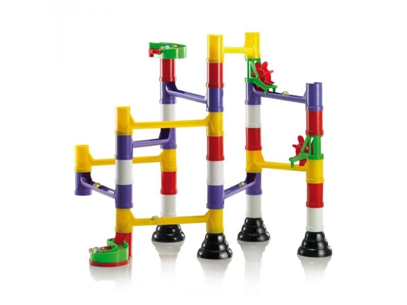 Assemble your own marble runs with this excitingly challenging construction set. Reproduce the layouts pictured on the box or have fun experimenting with new designs. Interlocking chutes, bridges, pillars, and spinning wheels can all be combined in countless configurations that guarantee hours of great fun. Marble Run promotes creativity and logical reasoning both of which are required to place and fix the components precisely and get the marbles rolling. All pieces are made of high-quality materials. They are unbreakable and durable and allow you to build solid and precise structures that will amaze everyone.