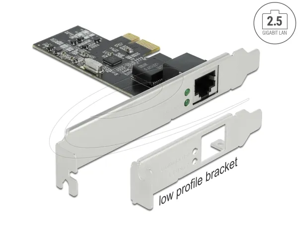 The PCI Express card by Delock offers one network port with a data transfer rate up to 2500 Mbps.