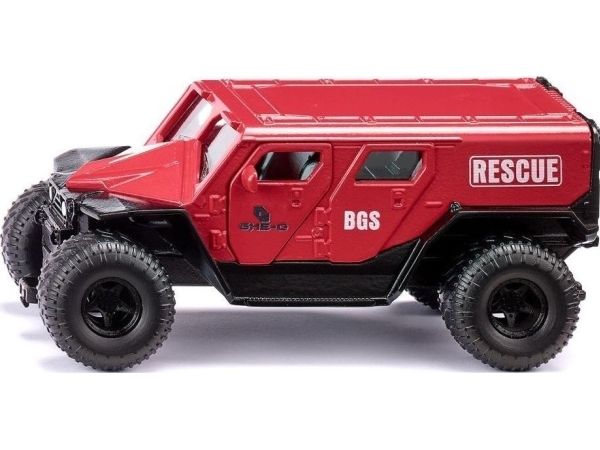 This rescue vehicle has no need for a siren or flashing lights. Powered by a large V8 engine, the futuristically styled GHE-O Rescue monster truck forces its way through. With sprung front and rear axles and its large balloon tyres, the miniature too is perfectly equipped for impassable terrain. The tyres can also be removed. With the 1:50 scale miniature, the front doors and rear door can be opened, so that the rescue stretcher and injured person can be pushed into the vehicle. Rescue mission successful!