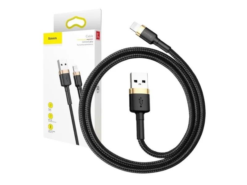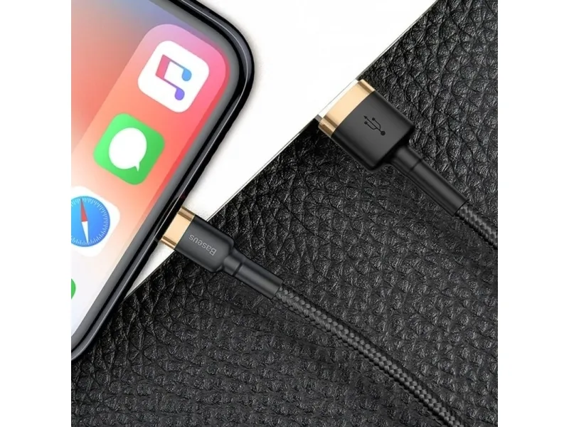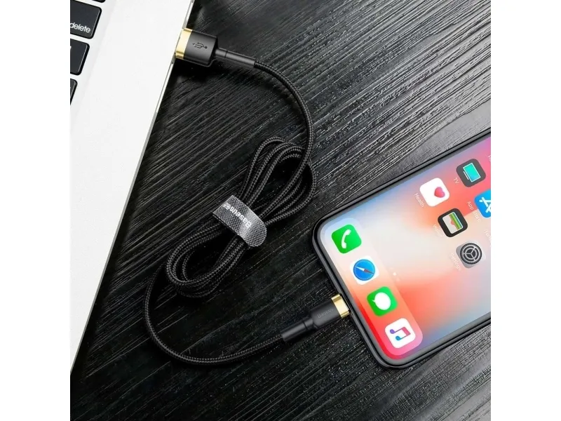 KThe USB Lightning cable allows for a 1.5 A charge, 480 Mbps data transfer, and is also made of robust nylon, resistant to mechanical damage and breakage.