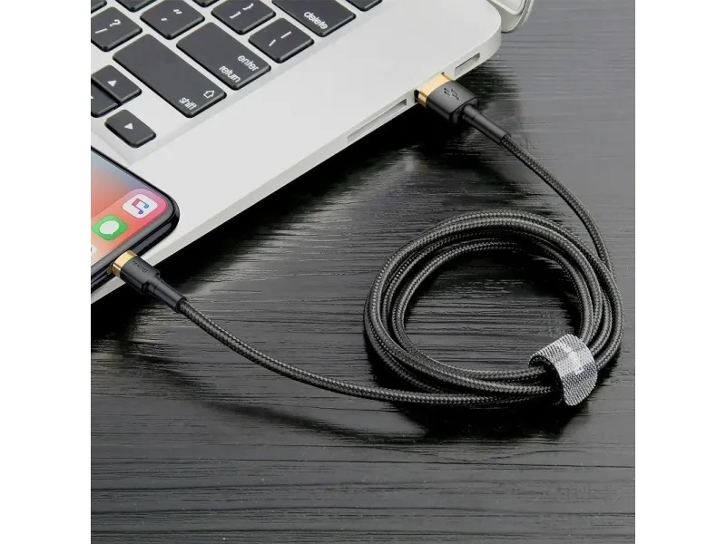 The cable is made of flexible and durable nylon and the plug is finished with an aluminium housing. Due to this fact, it is resistant to tears and mechanical damage, most often occurring in cables of this type. It passed the test positively, keeping 50 kg without any damage.