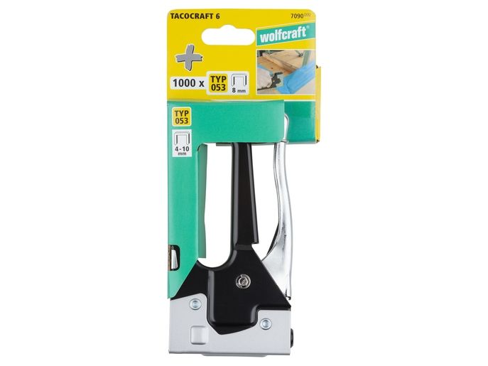 Das tacocraft-6-Set bietet mit dem hochwertigen Handtacker und 1.000 passenden Breitrückenklammern vom Typ 053 in 8 mm alles, was Sie zum Tackern verschiedenster Werkstoffe brauchen. Er ist mit Klammern vom Typ 053, 4–10 mm kompatibel. Ob Papier, Leinwände auf Keilrahmen, Folien oder Möbelstoffe – der tacocraft 6 ist für zahlreiche Arbeiten im Haushalt und Hobbybereich geeignet. Dank der ergonomischen Form ist ermüdungsfreies Arbeiten selbst bei umfangreichen Projekten garantiert. Der integrierte Klammerschieber erleichtert das schnelle Wiederbefüllen des Magazins. Dieses ist aufklappbar, so können Sie die Klammern im Fall eines Klammerstaus einfach lösen.