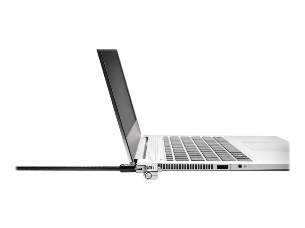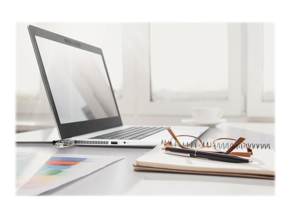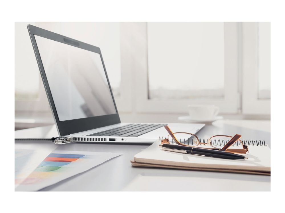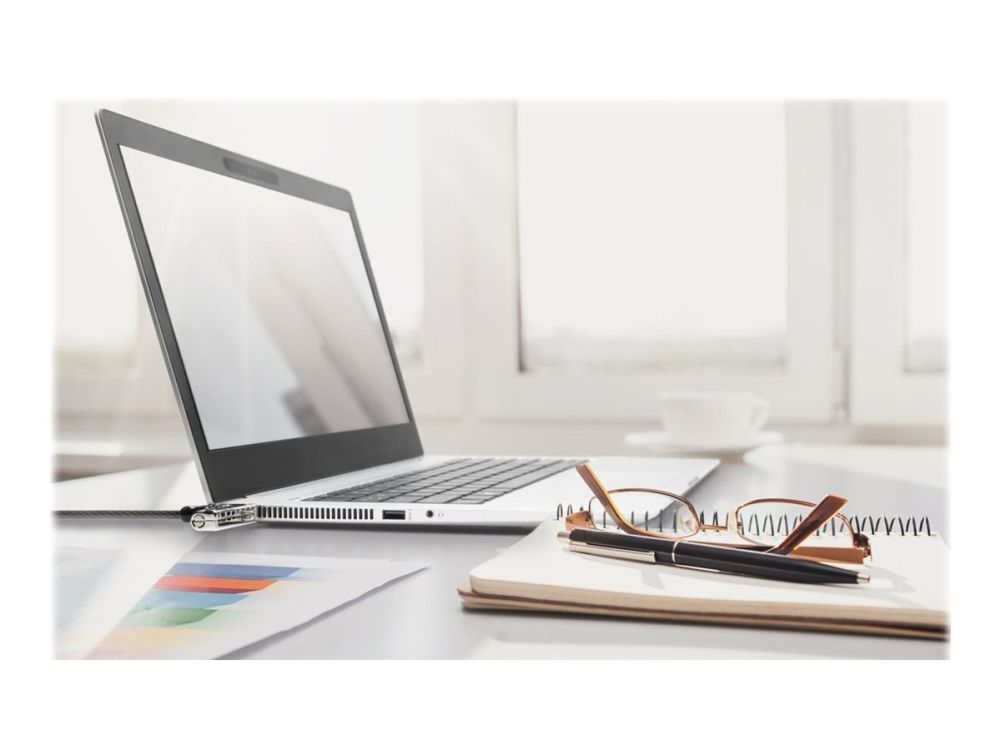 Mit dem Slim-Nano-Schließkopf hebt sich Ihr Gerät nicht vom Untergrund ab, sodass es flach und stabil aufliegt. Der starke Schließkopf mit Kabel wurde nach branchenführenden Standards für Drehmoment und Zugkraft, Schutz vor Fremdkörpern, Lebenszyklus, Korrosion und andere Umgebungsbedingungen geprüft und getestet. Karbonstahlkabel mit Schnittschutz zur Verankerung an Schreib- oder Arbeitstischen und anderen Befestigungspunkten. Die seitlich ausfahrenden "Haken" des einzigartigen Schließsystems greifen an den Innenseiten des Nano-Sicherheits-Slots an und sorgen für eine starke Verbindung zwischen Geräterahmen und Schloss und damit für guten Diebstahlschutz. Der einhändig bedienbare schwenk- und drehbare Kabelschließkopf sorgt für leichte und flexible Verbindung und Bewegung. Der einstellbare 4-stellige Zahlencode bietet 10.000 mögliche Kombinationen, die der Benutzer festlegt. Die kostenlose Registrierung des Codes per Register & Retrieve™ ermöglicht das schnelle und einfache Zurücksetzen des Zahlencodes. Der einhändig bedienbare schwenk- und drehbare Kabelschließkopf sorgt für leichte und flexible Verbindung und Bewegung.