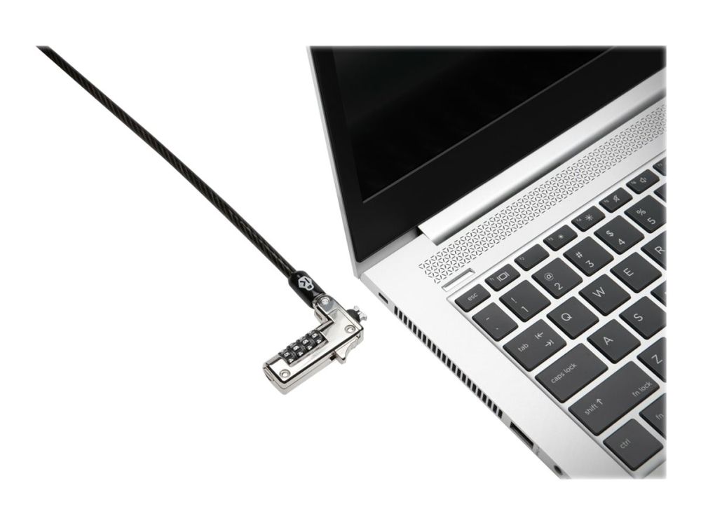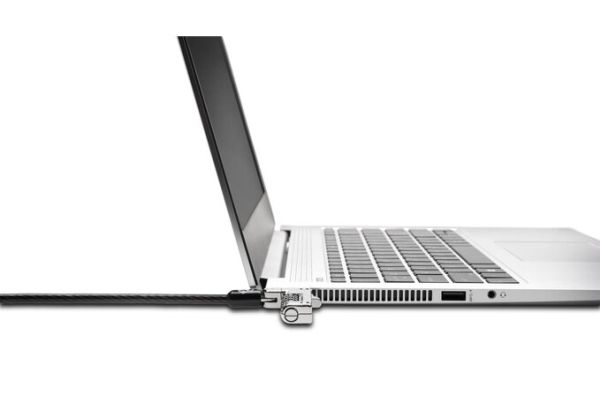Bei den modernen flachen Laptops mit Nano-Sicherheits-Slot passt zwar ein reguläres Kabelschloss, aber der Laptop selbst ist so dünn, dass er nicht mehr flach aufliegt, wenn das Schloss angebracht ist, da es dicker ist als der Laptop selbst, sodass er sich von dem Untergrund, auf dem er liegt, abhebt. Das Slim NanoSaver®-Laptopkombinationsschloss ist die stärkste schlüssellose Sicherungslösung, bei der ultradünne 2-in-1-Laptops mit Nano-Sicherheits-Slots flach und stabil auf einem Untergrund liegen können.