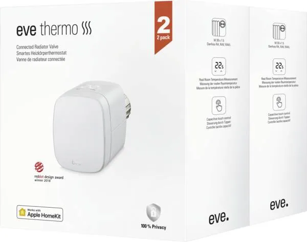 (2 Pack) Control your room temperature with ease using the app, Siri, schedules, the integrated touch controls, or based on your presence. Eve Thermo synchronizes your heating to suit your routine: save energy when you’re away from home or make your place a cozy and warm haven of relaxation when you’re there.