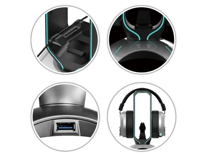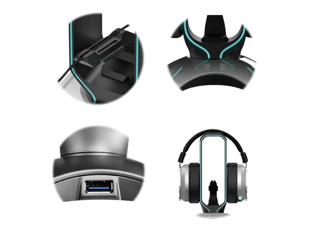 The stylish LC-HUB-HEAD-BUNGEE unites a USB hub, headphone holder and mouse bungee in one device!