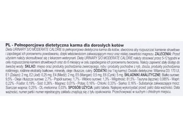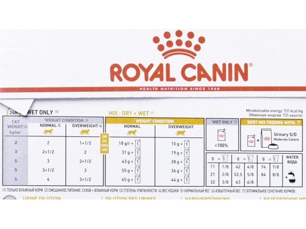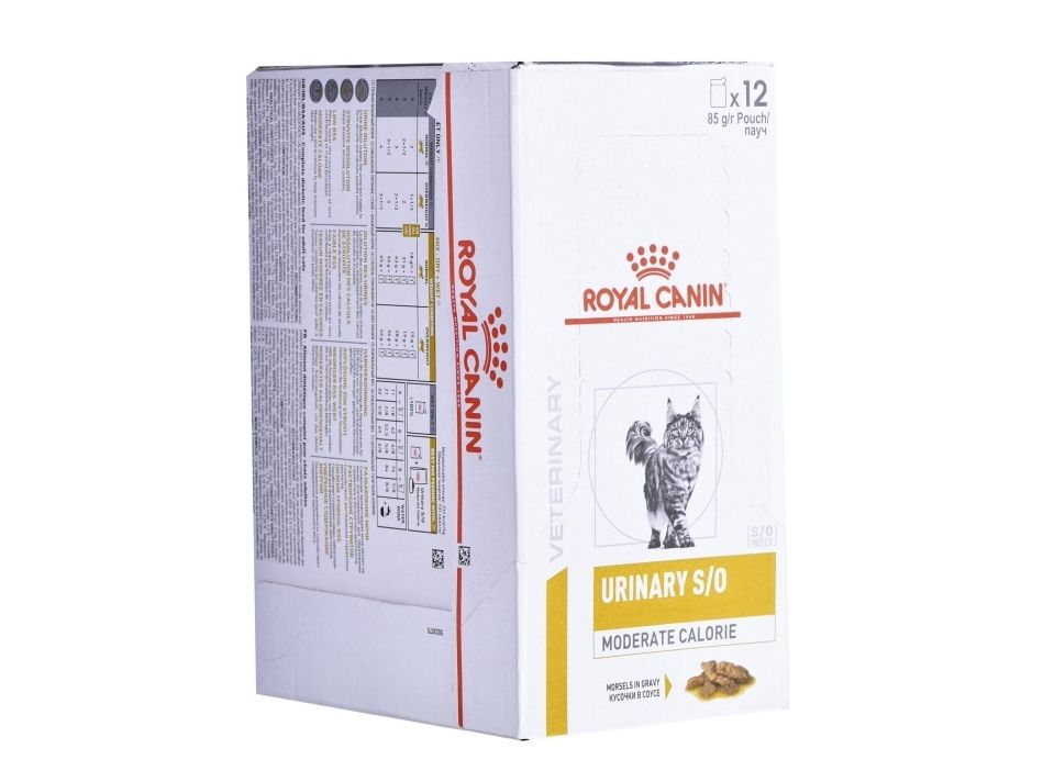 ROYAL CANIN® Feline Urinary S/O Moderate Calorie in Gravy is specially formulated with the nutritional needs of cats with urinary sensitivities in mind. This food is available in boxes of 12x 85g pouches. The nutrients included in this exclusive formula help to dissolve all types of struvite stones, whilst also lessening the likelihood of reformation. ROYAL CANIN® Feline Urinary S/O Moderate Calorie in Gravy is developed with Relative Super Saturation (RSS) methodology and helps to lower the concentration of ions that play a part in the formation of bladder stones. ROYAL CANIN® Feline Urinary S/O Moderate Calorie in Gravy’s reduced calorie content helps your cat to maintain an ideal weight for optimal wellbeing. As part of the ROYAL CANIN® Veterinary Range, it is important that this product is only given to your pet when recommended by a veterinary professional. To cater to the individual preferences of each cat, ROYAL CANIN® Feline Urinary S/O Moderate Calorie is also available as dry food with crunchy and tasty kibble. If you’re considering mixed feeding, simply follow our feeding guidelines to ensure your cat gets an accurate amount of both wet and dry food for optimal benefit.