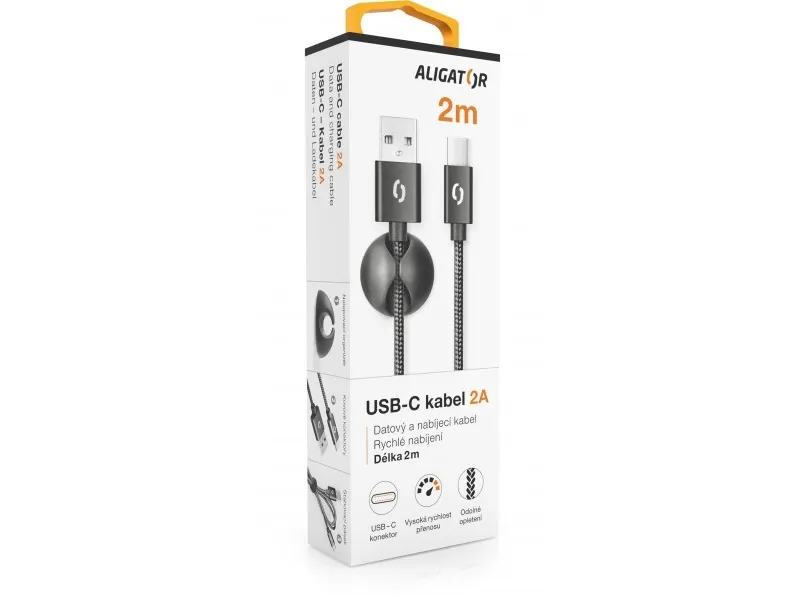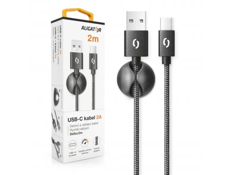 Aligator DATKP26. Cable length: 2 m. Connector 1: USB A, Connector 2: USB C, Product colour: Black
