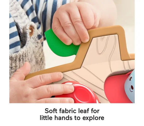The Fisher-Price Hide & Peek Pop-Up activity toy turns baby’s playroom into a mystical forest where surprising things happen. Push a mushroom and a squeaking mouse pops up to say hello. Slide a leaf to meet a friendly fox. Pet a butterfly and its buddy, the hedgehog, joins the fun. Stop to smell the flower…and give it a spin to see the rooster pop up. With four activities to press, turn, toggle and slide, little hands can strengthen their dexterity while surprising sounds and pop-up pals introduce baby to cause and effect.