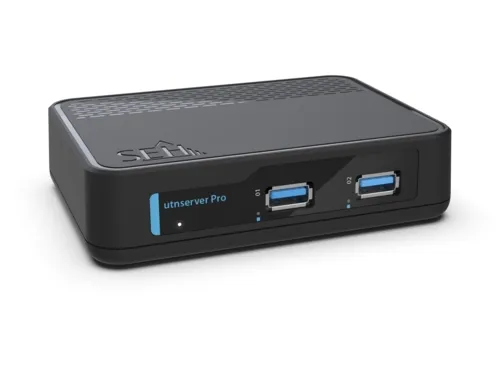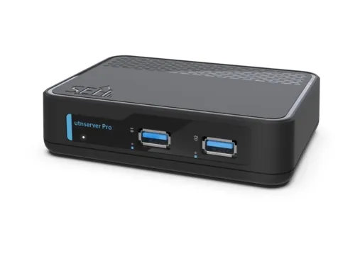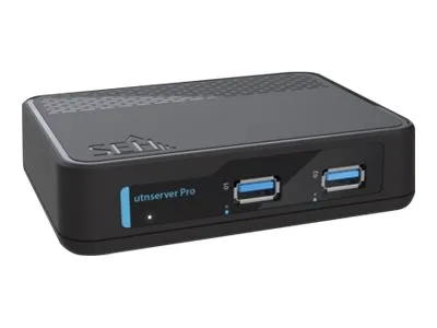 The utnserver Pro provides all types of USB devices over a network and works according to the Plug & Play principle: You integrate the device server into your network and connect your USB devices to its USB ports. Use the related SEH UTN Manager software to create a virtual USB connection to the USB device with one click. You are then abled to use the connected USB device like a locally connected one. The connection to your USB devices works via LAN, VPN, VLAN, Internet and in server-based and virtualized environments. This means that companies can access their USB devices from any work environment and any location: convenient, high-performance and encrypted!