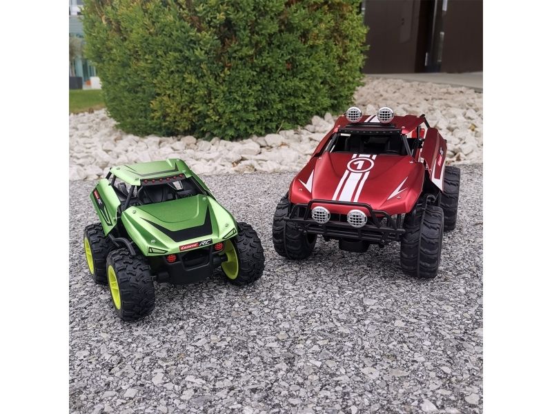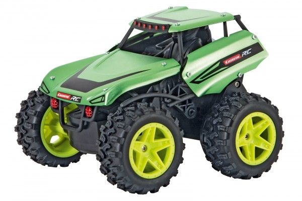 Coole Tricks! Mit dem neuen Carrera RC Mini Stunt Dancer begeisterst du deine Freunde mit heißen Stunts und großartigen Moves. Aber auch in puncto Auftreten macht der Mini Stunt Dancer etwas her. Das kompakte Stunt-Car hat so einige Tricks auf Lager und wird so deine Umgebung sicherlich beeindrucken. 360-Grad-Spinning und Wheely-Stunts rauben deinen Freunden den Atem. Mit seinem auffällig grünen Design ist das Gefährt von weitem sichtbar und lässt die Stunts noch besser wirken. Der Mini Stunt Dancer fährt bis zu 12 km/h schnell durch den Garten, den Park, die Straße oder einfach nur im Wohnzimmer zu Hause. Dabei wirbelst du ordentlich Staub auf und erlebst pure Action und Spaß! Bist Du also auf der Suche nach tollen Stunts mit erfrischendem Design dann sollte unser Mini Stunt Dancer von Carrera deine erste Wahl sein!