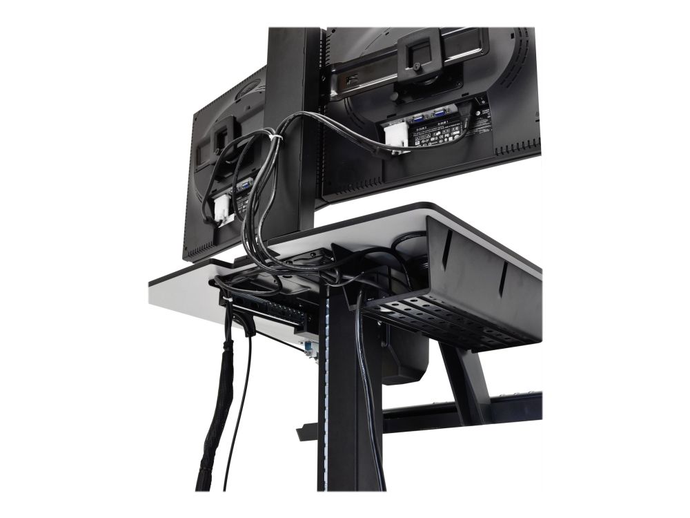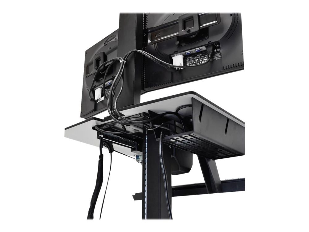 Counterbalanced adjustment points allow instantaneous, tool-free re-positioning while you work! Additional features include 25" total height adjustment, a small footprint and advanced cable management. An integrated brake secures table in place and with just a touch and releases for height adjustment.
