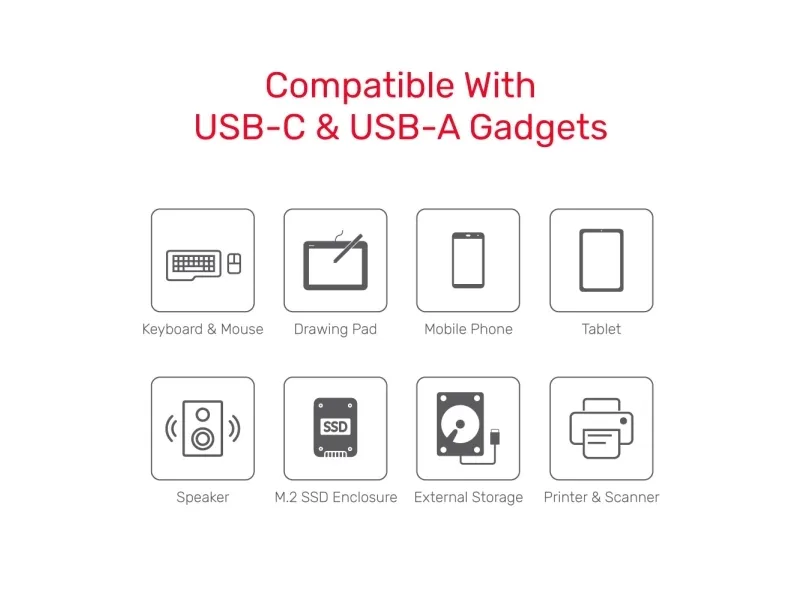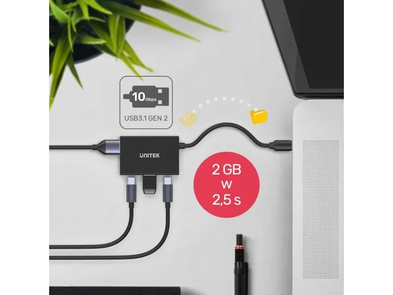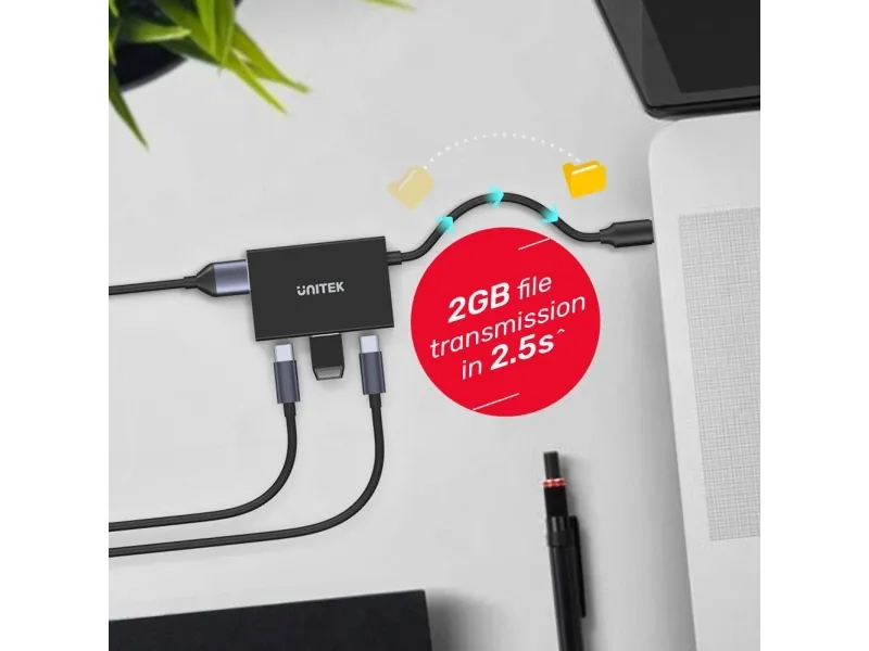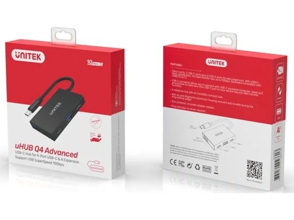 uHUB Q4 Advanced is a USB-C 4-port hub series composed of USB3.1 Gen2 10 Gbps SuperSpeed USB sockets with the miniature dimension exterior. H1302A offers you the 2 USB-A ports and 2 USB-C ports for expansion.