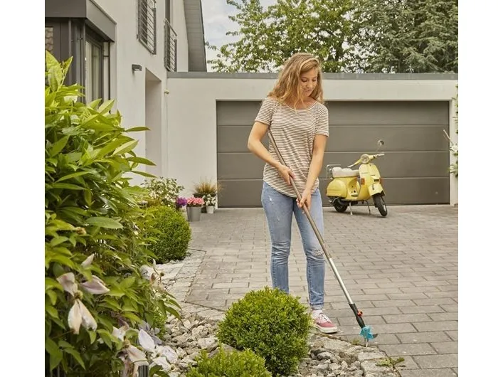 Du empfindest die regelmäßige Entfernung von Unkraut auf Wegen, Einfahrten oder der Terrasse als umständlich und lästig? GARDENA präsentiert mit dem combisystem 2in1 Fugenkratzer ein cleveres Werkzeug für das problemlose und schonende Entfernen von Unkraut und Moos. Der combisystem 2in1 Fugenkratzer erlaubt eine gründliche Entfernung von Unkraut an zahlreichen Stellen und unterschiedlich breiten Fugen. Er verfügt über ein robustes und dünnes Edelstahl-Messer, welches für den Einsatz in schmalen Fugen, zum Beispiel zwischen eng anliegenden Terrassenplatten oder Pflastersteinen, gedacht ist. In breiteren Fugen kommt wiederum der spezielle und dreieckig gebogene Edelstahl-Bügel zur Anwendung. Dieser erlaubt ein ebenso gründliches wie einfaches Entfernen von Moos oder Wildkraut. Um die Natur zu schonen, bietet der combisystem 2in1 Fugenkratzer von GARDENA eine rein umweltfreundliche und mechanische Lösung. Der Fugenreiniger ist außerdem sehr robust und wurde aus hochwertigen Materialien gefertigt. Er kann mit jedem Stiel aus der combisystem-Serie kombiniert werden. Nach starker Abnutzung lässt sich der Bügel zudem austauschen. Auf diese besonders hohe Qualität vergibt GARDENA zusätzlich eine Garantie von 25 Jahren.
