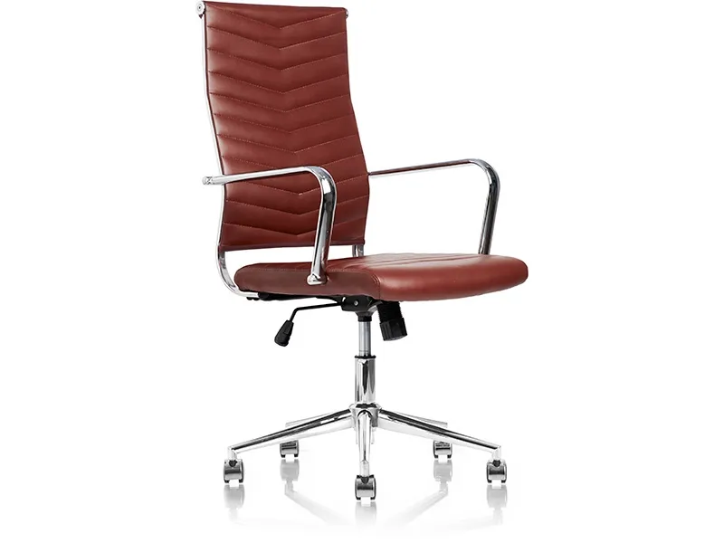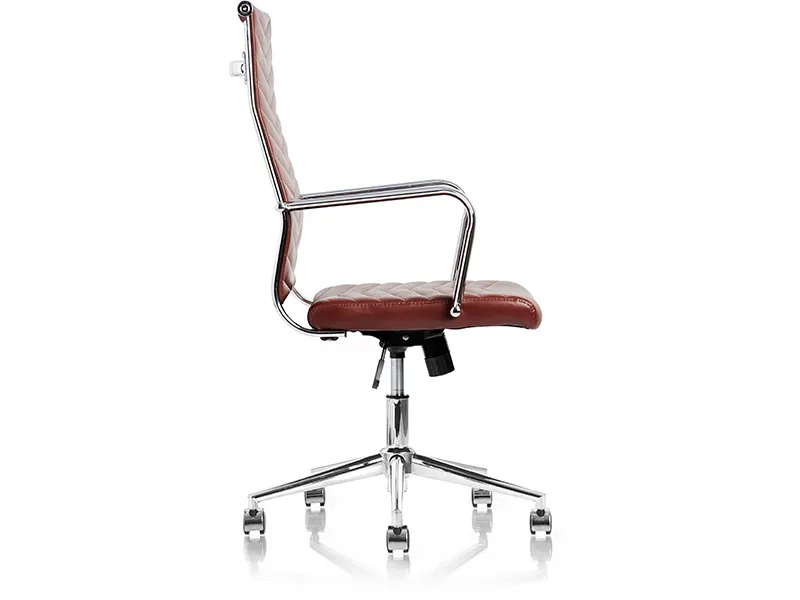 JUEL i brun udgave - en billigere, men komfortabel version af vore klassiske konferencestole. Juel leveres i brun skindimitation, med krom amlæn og V-mønstret ryg og sæde.