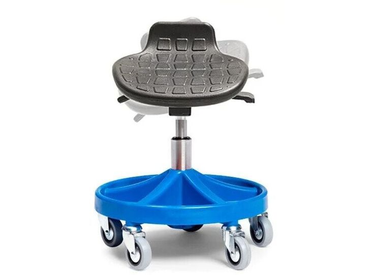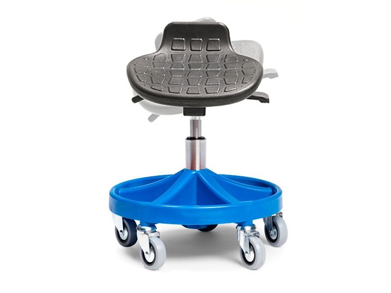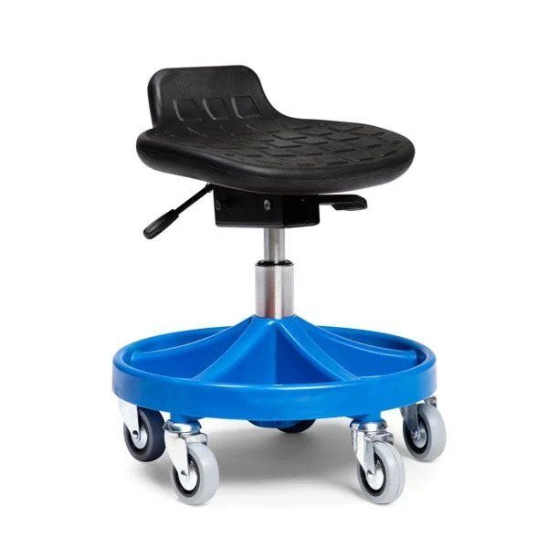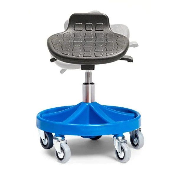 Arbejdsstol All-Round Comfort, her med rødt understel og 75 mm hjul, er en smart og robust arbejdsstol / montørstol, tilpasset til dig som har meget arbejde siddende på hug. I stolens understel finder du 5 praktiske rum for opbevaring af det du benytter mest i løbet af en arbejdsdag. Comfort-udgaven af arbejdsstol All-Round, har et vinklingsbart og klassisk udseende industristolssæde i PU-skum, med trinløs justering af siddehøjde 390 - 510 mm. Denne praktiske arbejdsstol er egnet for brug på værkstedet, ved monteringsarbejde eller også i forbindelse med arbejde i skole og børnehaver.