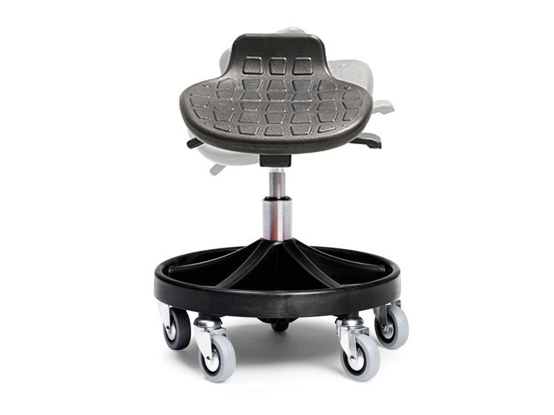 Arbejdsstol All-Round Comfort, her med rødt understel og 75 mm hjul, er en smart og robust arbejdsstol / montørstol, tilpasset til dig som har meget arbejde siddende på hug. I stolens understel finder du 5 praktiske rum for opbevaring af det du benytter mest i løbet af en arbejdsdag. Comfort-udgaven af arbejdsstol All-Round, har et vinklingsbart og klassisk udseende industristolssæde i PU-skum, med trinløs justering af siddehøjde 390 - 510 mm. Denne praktiske arbejdsstol er egnet for brug på værkstedet, ved monteringsarbejde eller også i forbindelse med arbejde i skole og børnehaver.
