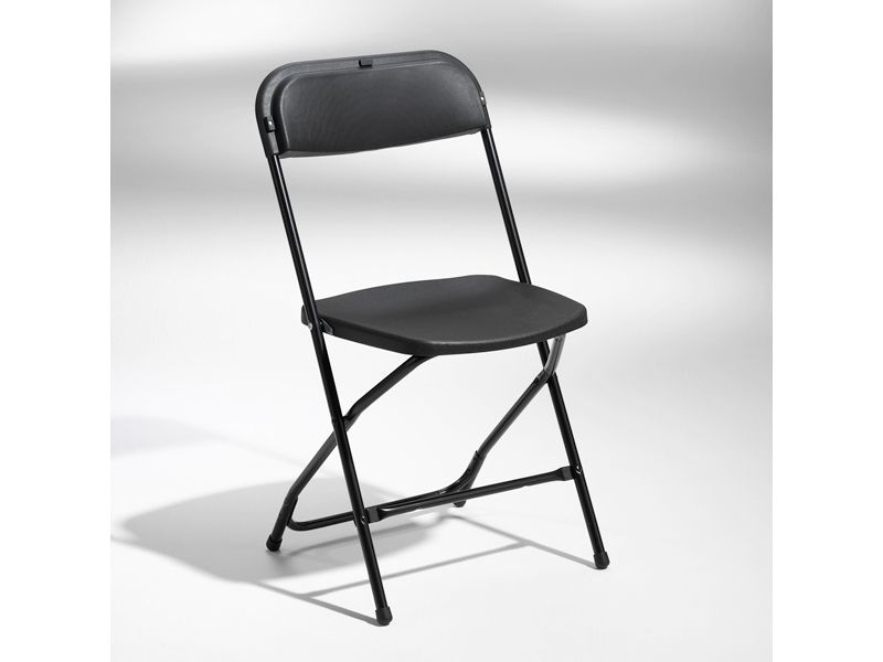 Praktischer Klappstuhl schwarz mit schwarzen Stuhlbeinen