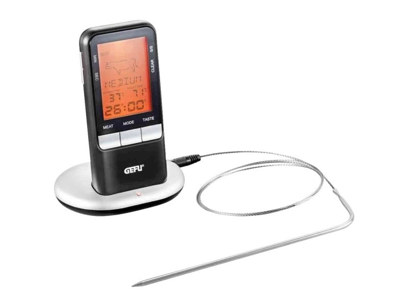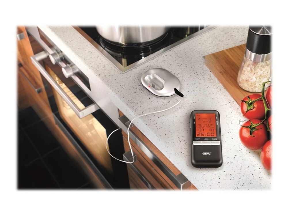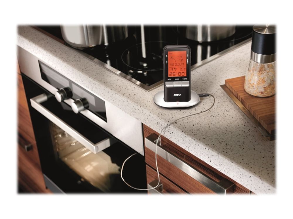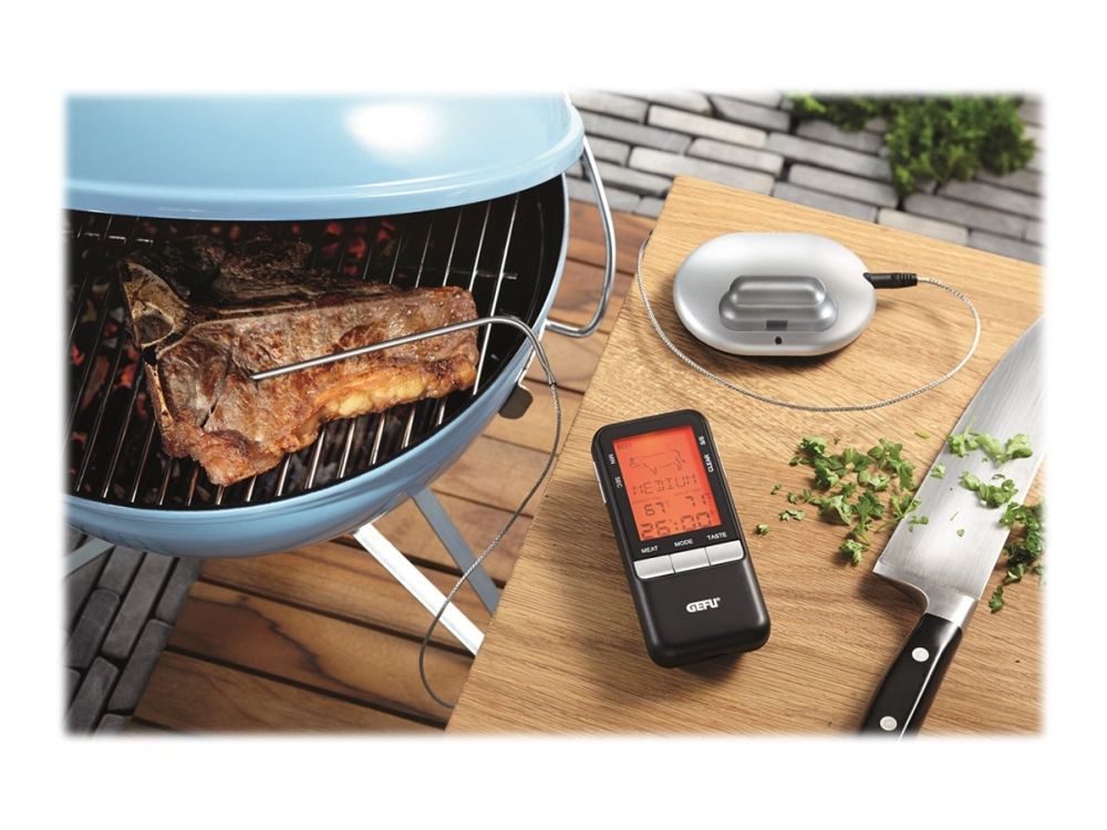 Über Funk erhalten Sie stets die aktuelle Temperaturanzeige auf das Handgerät übermittelt. Zum punktgenauen Zubereiten anderer Speisen dient der zusätzlich integrierte Timer.