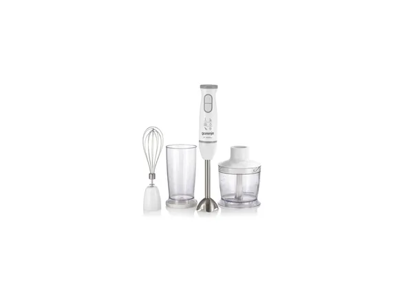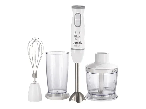 Discover the Gorenje Life Collection HBC564QW hand blender, a versatile and powerful kitchen companion designed to make your cooking experience efficient and enjoyable. With a 500 W power consumption and a DC motor, this hand blender offers efficiency and power. The pulse function allows for precise control over the texture of your ingredients, making it perfect for a wide range of recipes. The inclusion of a 500 ml chopper and a 500 ml beaker, along with a double blade knife and whisk attachment, ensures you have all the necessary tools for blending, chopping, and whisking. Constructed from durable metal and plastic, the HBC564QW is built to last and easy to clean, making it a valuable addition to any kitchen. Whether you're preparing smoothies, soups, or sauces, the Gorenje HBC564QW hand blender is designed to meet your needs with ease and efficiency.