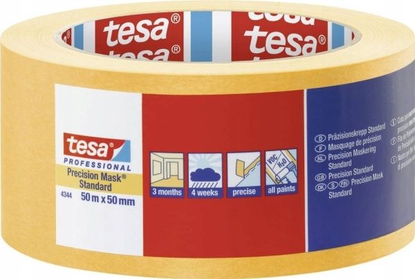 Das Abklebeband Tesa 4344 orange ist ein vielseitiges Klebeband für saubere Farbränder bei Maler- und Lackierarbeiten im Innen- und Außenbereich.