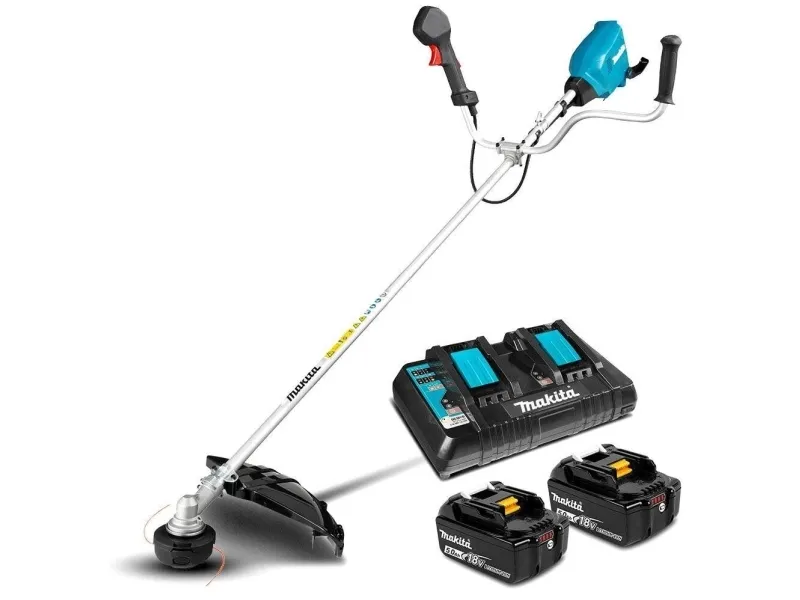 Makita DUR369APT2. Type: String trimmer, Head type: Nylon line, Handle type: D-loop handle. Power source: AC/Battery, Power: 1000 W, AC input voltage: 36 V. Weight: 6.5 kg, Length: 1846 mm