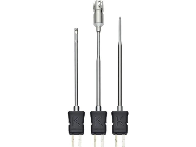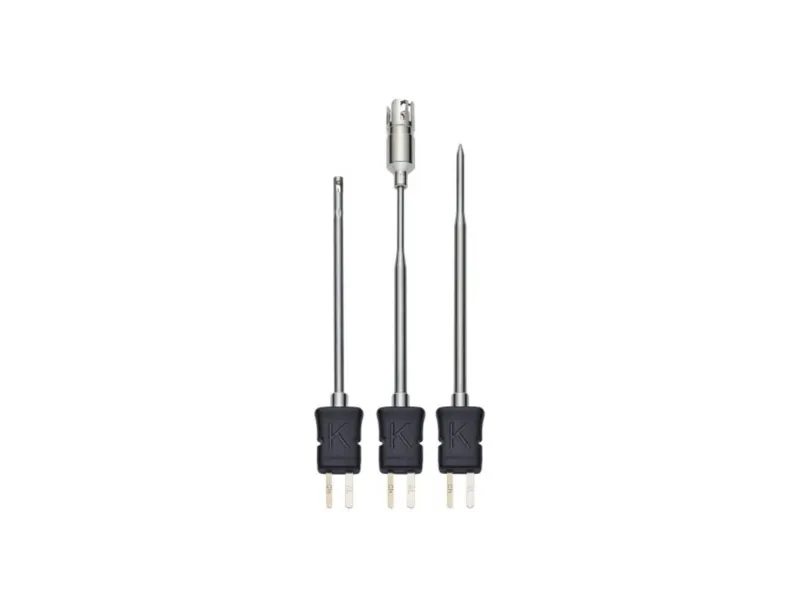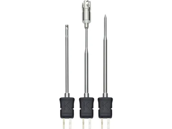 Temperaturføler-sæt - med luftføler, dyk-/indstiksføler og overfladeføler (Te K-type )Alsidigt anvendeligt til mange forskellige temperaturanvendelser: Sættet består af en luftføler, et dyk-/indstiksføler og et overfladeføler. Alle følere er udstyret med termoelement (type K, klasse 1) og derved for eksempel kompatibel med Smart Probe Testo 915i og en lang række måleapparater fra Testo.